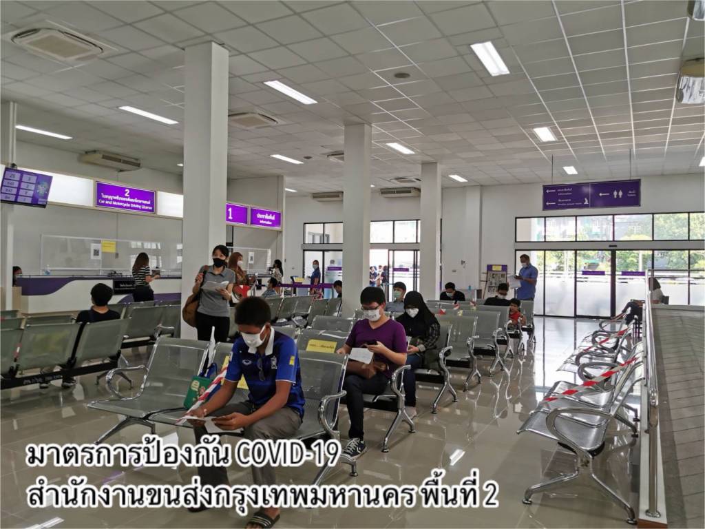 •ด้านอาคารสถานที่และสิ่งอำนวยความสะดวกในหน่วยงาน ทำความสะอาดฆ่าเชื้อโรคพื้นที่ให้บริการภายในสำนักงานขนส่งทุกวัน โดยเฉพาะจุดที่มีการสัมผัสบ่อยครั้ง เช่น เคาน์เตอร์บริการ ที่จับประตู ที่จับราวบันได ปุ่มกดลิฟต์ เป็นต้น รวมถึงห้องอบรมและห้องทดสอบภาคทฤษฎี และภายในรถที่ใช้ในการทดสอบขับรถด้วย