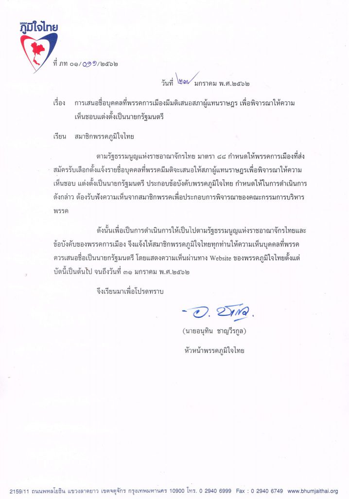 27 มกราคม 2562 เวลา 13:34การเสนอชื่อบุคคลที่พรรคการเมืองมีมติเสนอสภาผู้แทนราษฎร เพื่อพิจารณาให้ความเห็นชอบแต่งตั้งเป็นนายกรัฐมนตรีการเสนอชื่อบุคคลที่พรรคการเมืองมีมติเสนอสภาผู้แทนราษฎร เพื่อพิจารณาให้ความเห็นชอบแต่งตั้งเป็นนายกรัฐมนตรีแชร์บทความนี้:
