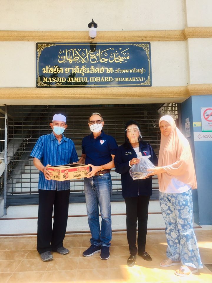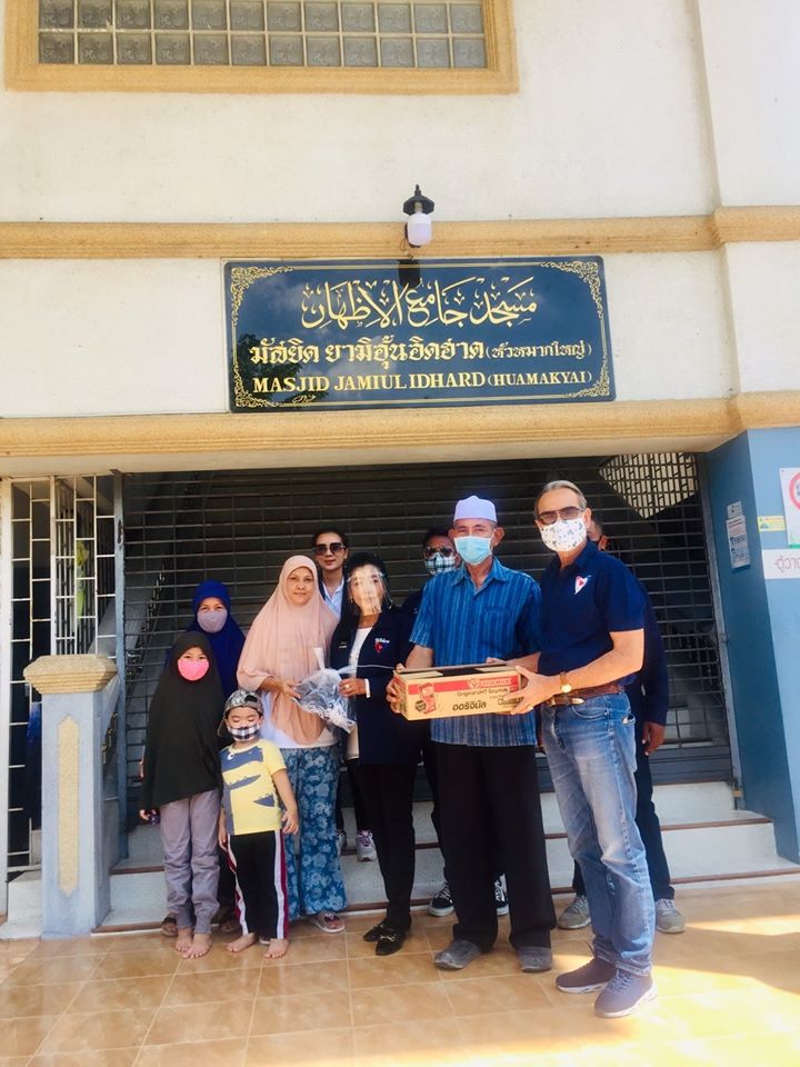 หลังจากนั้น ยังได้มอบอุปกรณ์ป้องกันโควิด-19 เช่นหน้ากากอนามัย เจลแอลกอฮอล์ และหน้ากากเฟซชิลด์ ให้กับโรงเรียนสอนศาสนายามิอุ้นอิดฮาด หัวหมากใหญ่ เขตสวนหลวง กรุงเทพมหานคร เพื่อเตรียมความพร้อมก่อนเปิดเทอม 1 กรกฎาคม นี้