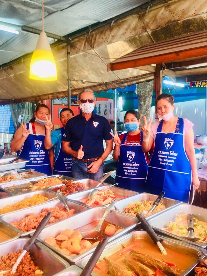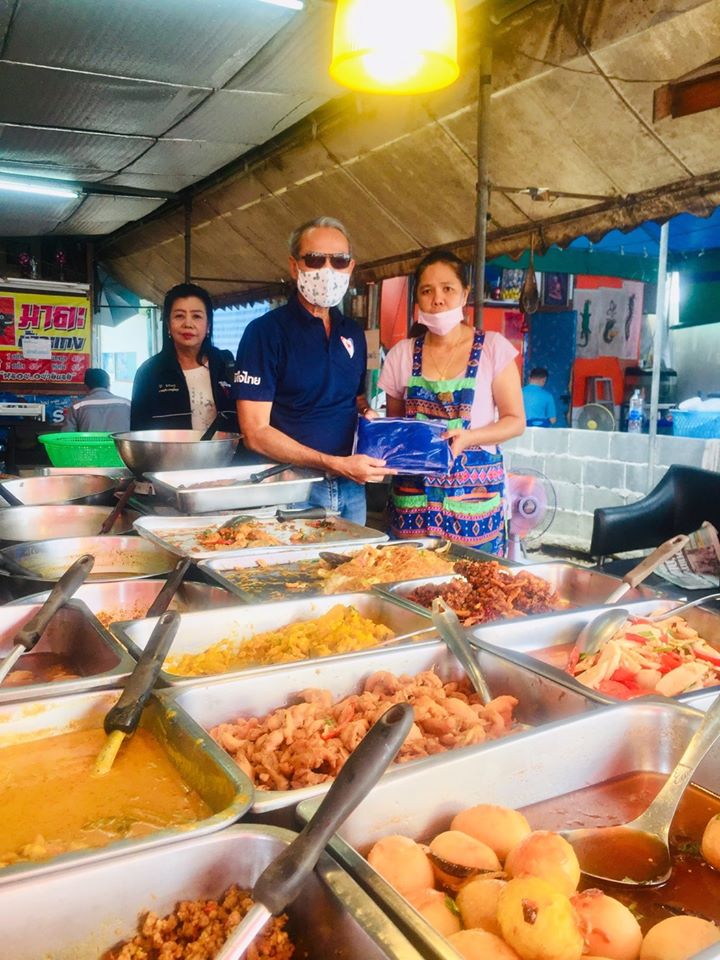 ต่อด้วยพื้นที่ พัฒนาการ 25 หน้า ส.ส.คลองตัน ได้มอบผ้ากันเปื้อนให้กับแม่ข้าวแกงปักษ์ใต้ เพื่อสุขลักษณะอนามัยทีดี และมีความปลอดภัยในการประกอบอาหาร