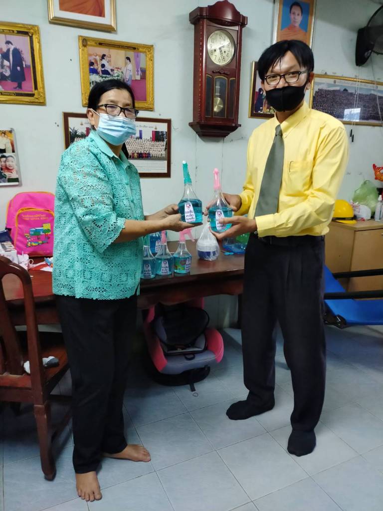 นอกจากนี้ ได้ มอบหมายให้คุณจีรวรรณ พิทยาภรณ์ และสจ.ธวัฒน์ ศิริปริญญานันท์ มอบแอลกอฮอล์ฆ่าเชื้อให้กับโรงเรียนและหน่วยต่างๆ ได้แก่