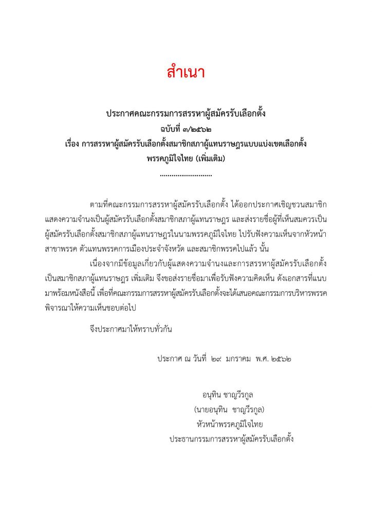 29 มกราคม 2562 เวลา 10:37ประกาศคณะกรรมการสรรหาผู้สมัครรับเลือกตั้ง ฉบับที่ 3/2562ประกาศคณะกรรมการสรรหาผู้สมัครรับเลือกตั้ง ฉบับที่ 3/2562 เรื่องการสรรหาผู้สมัครรับเลือกตั้งสมาชิกสภาผู้แทนราษฎรแบบแบ่งเขตเลือกตั้ง พรรคภูมิใจไทย(เพิ่มเติม) แชร์บทความนี้: