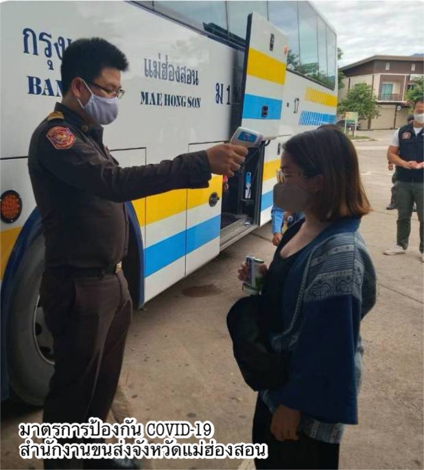 กรมการขนส่งทางบกจึงกำชับไปยังผู้ประกอบการขนส่ง ผู้ให้บริการขนส่งด้วยรถโดยสารสาธารณะทุกประเภท รวมถึงผู้ให้บริการสถานีขนส่งผู้โดยสารทุกแห่ง ดำเนินการตามนโยบายและมาตรการต่างๆ ของรัฐบาลและกระทรวงคมนาคมอย่างเคร่งครัดโดยให้สำนักงานขนส่งทุกแห่งจัดเจ้าหน้าที่ตรวจสอบอย่างต่อเนื่อง วันนี้ (7 กรกฎาคม2563) สำนักงานขนส่งจังหวัด เช่น ระยอง ปราจีนบุรี นครสวรรค์ เลยพระนครศรีอยุธยา อุทัยธานี พะเยา ราชบุรี ยโสธร ลำพูน มุกดารหาร กาญจนบุรีอุดรธานี ศรีสะเกษ สุรินทร์ สตูล ชัยภูมิ เชียงใหม่ บุรีรัมย์ หนองคาย นครราชสีมาอุบลราชธานี ลำปาง มหาสารคาม อุตรดิตถ์ ฉะเชิงเทรา นราธิวาส เพชรบูรณ์ ชุมพรระนอง ตรัง สุโขทัย ดำเนินการตรวจสอบรถโดยสารสาธารณะทุกประเภททั้งที่สถานีขนส่งผู้โดยสารและจุดตรวจคัดกรองในพื้นที่รับผิดชอบ กำชับมาตรการ Social distancing เว้นระยะนั่ง หรือยืนห่างกัน ทั้งภายในรถโดยสาร และที่นั่งคอยภายในสถานีขนส่งผู้โดยสาร ตรวจวัดอุณหภูมิของผู้โดยสารไม่ให้เกิน 37.5 องศาเซลเซียสควบคุมการใส่หน้ากากอนามัยอย่างเคร่งครัด และจัดเตรียมเจลแอลกอฮอล์สำหรับล้างมือ ทั้งนี้ กรมการขนส่งทางบกได้นำแพลตฟอร์มไทยชนะมาช่วยในการป้องกันและควบคุมโรคด้วย โดยให้ผู้ประกอบการขนส่งลงทะเบียนเข้าใช้แอปพลิเคชันไทยชนะหรือแพลตฟอร์มไทยชนะและจัดพิมพ์ QR Code เพื่อให้ผู้โดยสารลงทะเบียนเช็คอิน-เช็คเอาท์ ทุกครั้งที่ใช้บริการรถโดยสารสาธารณะ และเข้าใช้บริการที่สถานีขนส่งผู้โดยสาร ทั้งนี้ หากพบรถโดยสารสาธารณะไม่จัดให้มีมาตรการป้องกันการแพร่ระบาดโรคติดเชื้อไวรัสโคโรนา 2019 (COVID-19) หรือฉวยโอกาสเอาเปรียบระชาชน สามารถแจ้งร้องเรียนได้ที่สายด่วน 1584