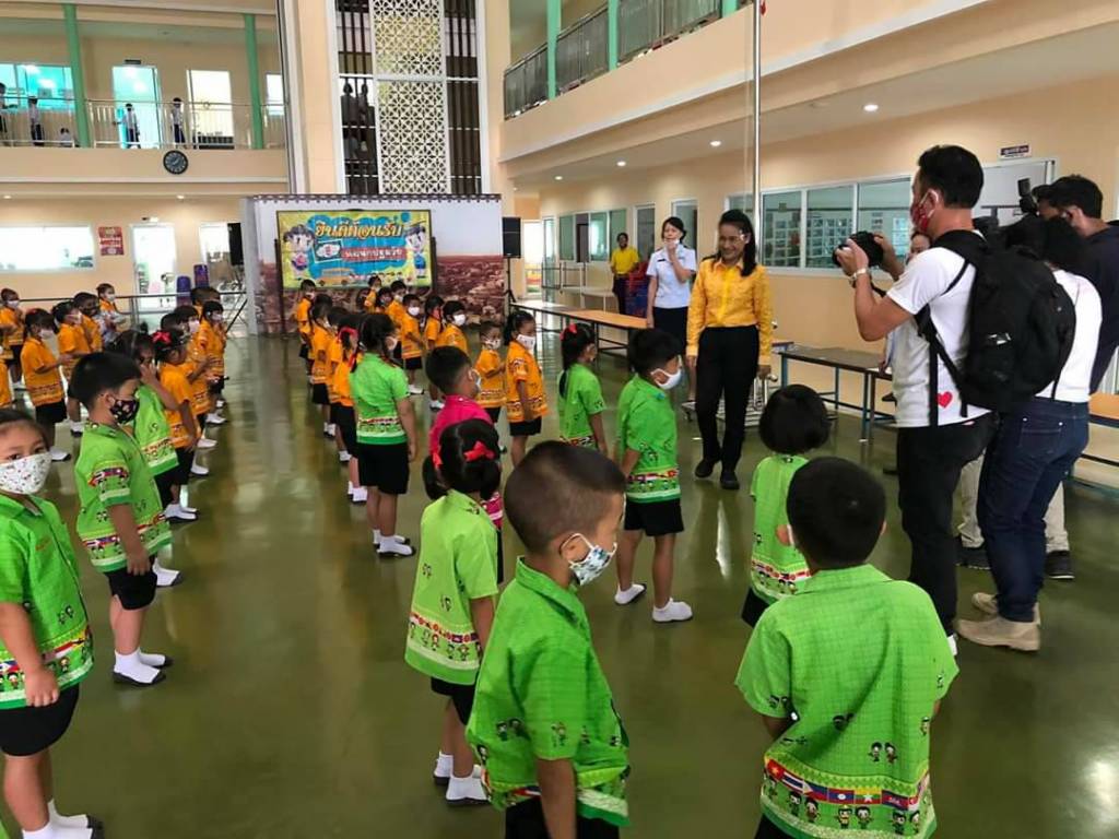 ครูพี่โอ๊ะ ร่วมกิจกรรมหน้าเสาธง โรงเรียนตรังคริสเตียนศึกษา