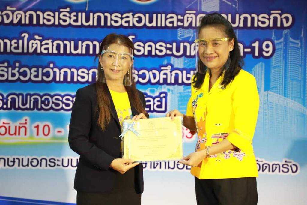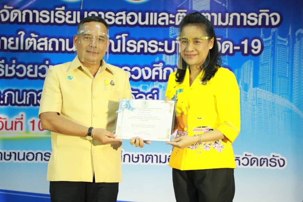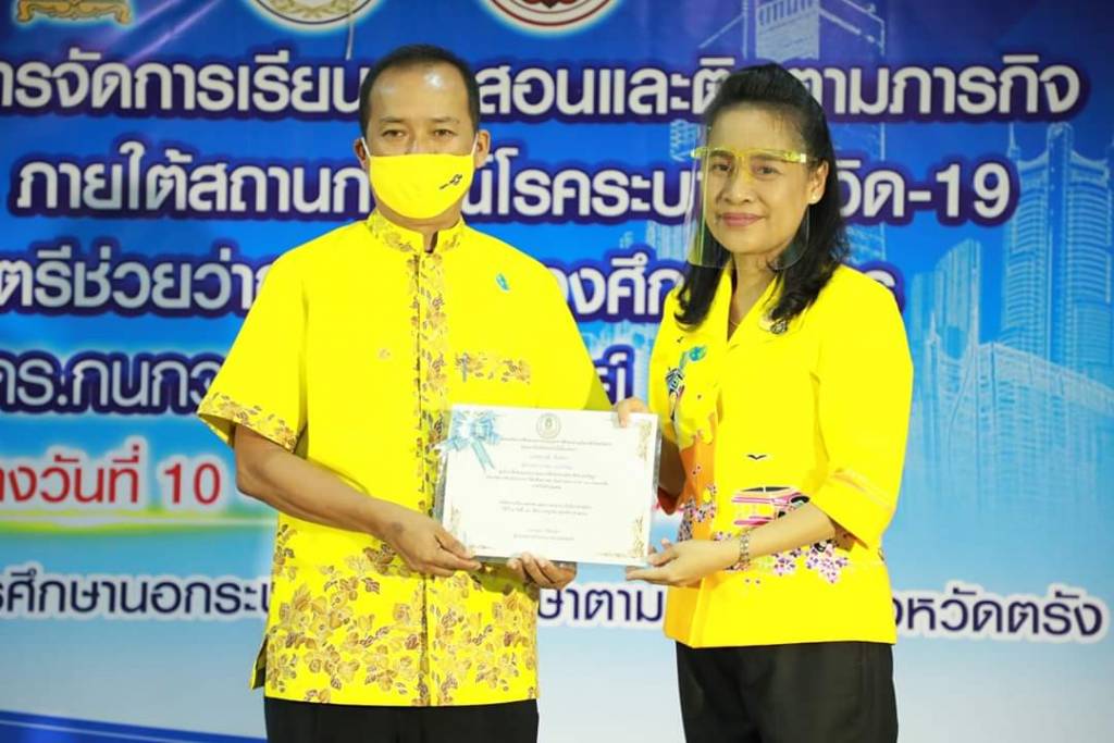 12 กรกฎาคม 2563 เวลา 15:37รมช.กนกวรรณ เชิดชูครู กศน.ตรัง "ครูพันธุ์พิเศษ" เป็นทั้งผู้สร้างและผู้ให้โอกาสการศึกษา-เรียนรู้ตลอดชีวิตแก่คนทุกช่วงวัย อย่างแท้จริงดร.กนกวรรณ วิลาวัลย์ รัฐมนตรีช่วยว่าการกระทรวงศึกษาธิการ เป็นประธานในพิธีมอบเกียรติบัตรแก่ ผู้บริหาร ครู และบุคลากร กศน. ผู้ปฏิบัติงานดีเด่น ของสำนักงาน กศน.จังหวัดตรัง ในระหว่างการลงพื้นที่ติดตามภารกิจ กศน.ในสถานการณ์การแพร่ระบาดของไวรัสโควิด-19 ณ จังหวัดตรัง เป็นลำดับที่ 77 ของประเทศไทย รมช.ศึกษาธิการ กล่าวแสดงความยินดีและชื่นชมกับผู้ที่ได้รับรางวัล ถือเป็นผลสำเร็จจากความทุ่มเท ทั้งแรงกาย แรงใจ และความคิดสติปํญญา ความสามารถ ในการจัดการศึกษาให้มีผลสัมฤทธิ์เป็นรูปธรรมอย่างมีคุณภาพ และขอเป็นกำลังใจในการร่วมจับมือกันทลายข้อจำกัดในการเรียนรู้ของประชาชน และการดำเนินภารกิจของ กศน.จังหวัดตรัง อย่างมีคุณภาพและมาตรฐานอย่างมั่นคงตลอดไป แชร์บทความนี้: