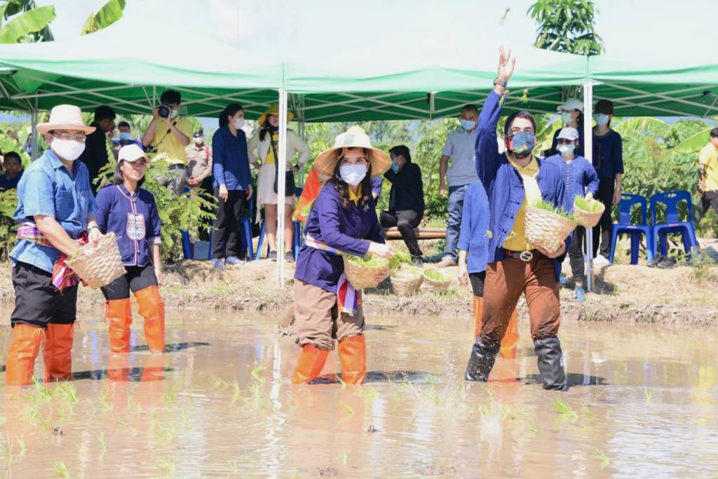โยนกล้า และขับรถดำนาปักดำกล้าข้าว พื้นที่แปลงทฤษฎีใหม่ โคกหนองนาตากะยาย มีพื้นที่รวมทั้งสิ้นกว่า 8 ไร่