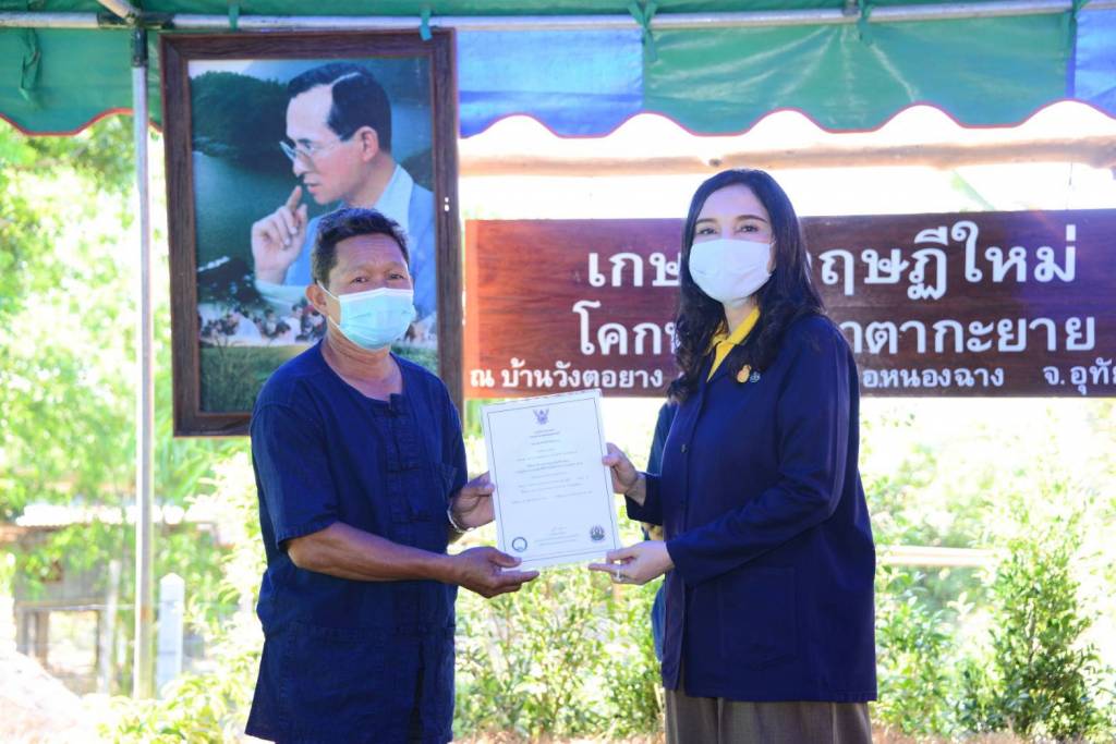 ในการนี้รัฐมนตรีช่วยว่าการกระทรวงเกษตรและสหกรณ์ ได้มอบเมล็ดพันธุ์ข้าวจากพระราชพิธีจรดพระนังคัลแรกนาขวัญ ปี 2563 แก่เกษตรกรจาก 8 อำเภอ รวมทั้งมอบหนังสืออนุญาตให้เข้าทำประโยชน์ในเขตปฏิรูปที่ดิน (ส.ป.ก.4-01) และมอบใบรับรอง GAP ให้กับเกษตรกร จำนวน 7 ราย ภายหลังพิธีดังกล่าว รัฐมนตรีช่วยว่าการกระทรวงเกษตรและสหกรณ์ พร้อมทั้งหัวหน้าส่วนราชการ ผู้บริหารระดับสูงและข้าราชการในสังกัดกระทรวงเกษตรและสหกรณ์ และผู้ว่าราชการจังหวัดอุทัยธานี ได้เดินเยี่ยมชมแปลงเกษตรผสมผสาน และปล่อยพันธุ์ปลา ในการนี้รัฐมนตรีช่วยว่าการกระทรวงเกษตรและสหกรณ์