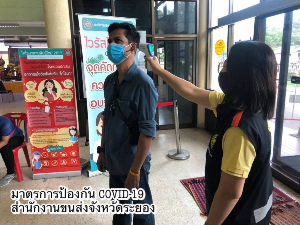 •ตั้งจุดคัดกรอง ตรวจวัดอุณหภูมิประชาชน ก่อนเข้าอาคารสำนักงาน