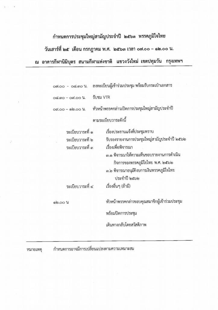 17 กรกฎาคม 2563 เวลา 13:41กำหนดการประชุมใหญ่สามัญประจำปี 2563 พรรคภูมิใจไทย วันที่ 25 ก.ค. 2563 ณ อาคารกีฬานิมิตบุตร สนามกีฬาแห่งชาติ กทม.กำหนดการประชุมใหญ่สามัญประจำปี 2563 พรรคภูมิใจไทย วันที่ 25 กรกฎาคม 2563 เวลา 09.00 น. ณ อาคารกีฬานิมิตบุตร สนามกีฬาแห่งชาติ แขวงวังใหม่ เขตปทุมวัน กรุงเทพมหานคร แชร์บทความนี้: