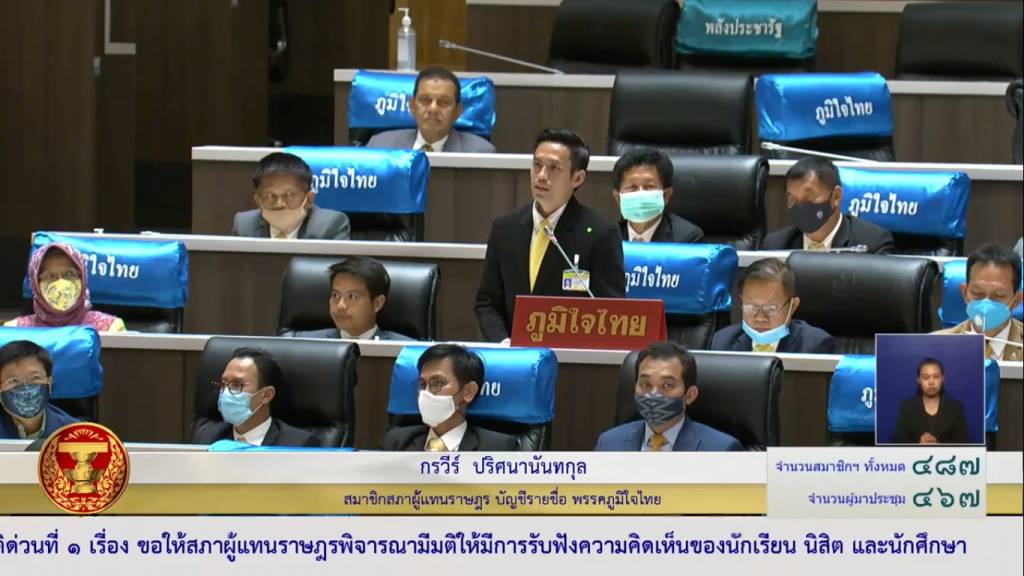เมื่อวันที่ 23 กรกฎาคม 2563 นายกรวีร์ ปริศนานันทกุล สมาชิกสภาผู้แทนราษฎรแบบบัญชีรายชื่อพรรคภูมิใจไทย จังหวัดอ่างทอง ได้กล่าวขอบคุณเพื่อนสมาชิกที่ได้เห็นความสำคัญ และรัฐสภาแห่งนี้ได้บอกกับพี่น้องประชาชนทั้งประเทศว่า เราเห็นความสำคัญ และเรารู้ว่าเสียงของคนรุ่นใหม่นั้นมีคุณค่า และเป็นสิ่งจำเป็นที่รัฐบาลและรัฐสภาแห่งนี้จำเป็นที่จะต้องมารับฟังความคิดเห็น และต้องมาพิจารณาว่าจะช่วยกันเพื่อที่จะหาทางออก และก้าวเดินต่อไปในประเทศไทยของพวกเราต่อไปอย่างไร