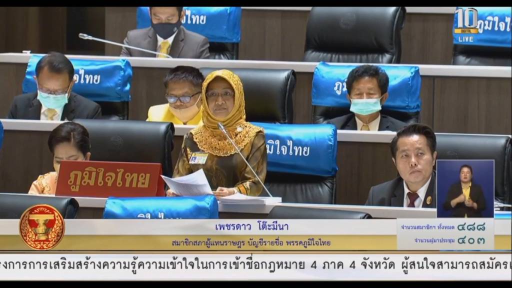 แพทย์หญิงเพชรดาว โต๊ะมีนา สมาชิกสภาผู้แทนราษฎรแบบบัญชีรายชื่อ จากพรรคภูมิใจไทย อภิปรายเรื่อง ความปลอดภัยทางถนน และคมนาคม ซึ่งเห็นด้วยเกือบทุกข้อเสนอแนะในทุกด้านของรายงานฉบับนี้