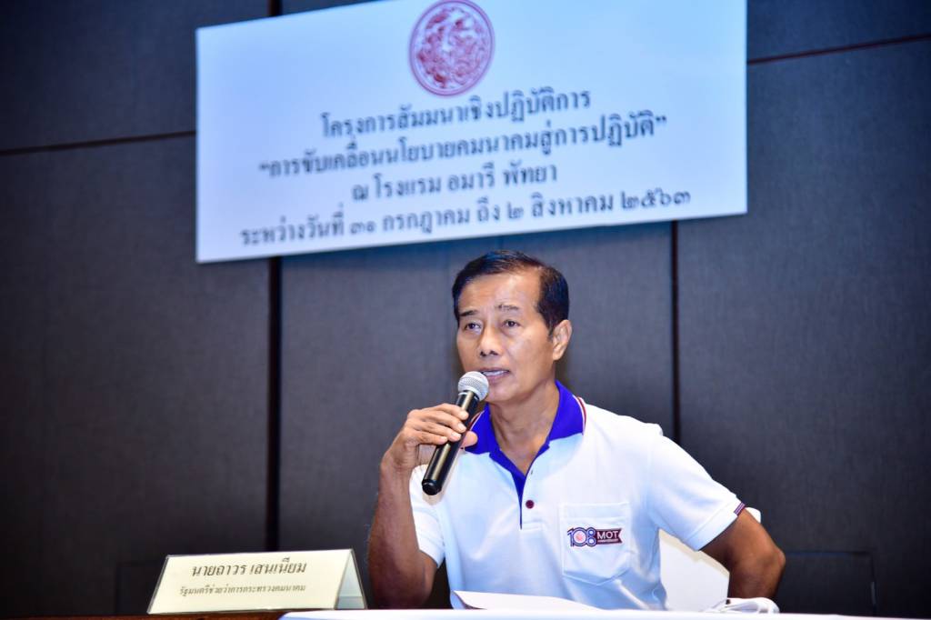 กระทรวงคมนาคม จัดสัมมนาเชิงปฏิบัติการ “การขับเคลื่อนนโยบายคมนาคมสู่การปฏิบัติ” ได้มีการระดมความคิดเห็นและติดตามการดำเนินงานของแผนงาน โครงการต่าง ๆ ของทุกหน่วยงาน รวมทั้งร่วมกันถอดบทเรียน ทบทวนผลการดำเนินงาน ปัญหา อุปสรรคที่ผ่านมา เพื่อกำหนดแนวทางในการดำเนินงานให้เป็นไปในทิศทางเดียวกันอย่างบูรณาการ เกิดการผลักดัน และขับเคลื่อนนโยบายกระทรวงคมนาคมไปสู่การปฏิบัติได้อย่างเป็นรูปธรรม มีประสิทธิภาพยิ่งขึ้น ทั้งนี้ เพื่อก้าวไปสู่เป้าหมายเดียวกัน นั่นคือ ความสุขของประชาชนคนไทยทุกคน การพัฒนาโครงสร้างพื้นฐานและการให้บริการด้านคมนาคมขนส่ง โดยยึดหลักการบริหารงานตามแผนยุทธศาสตร์ชาติระยะ 20 ปี และนโยบายรัฐบาล รวมทั้งยุทธศาสตร์กระทรวงคมนาคม เพื่อให้ประชาชนได้รับการบริการที่สะดวก ปลอดภัย มีประสิทธิภาพ และสามารถเข้าถึงได้อย่างเสมอภาค และเท่าเทียมกัน โดยให้ความสำคัญกับทุกนโยบาย ทุกโครงการต้องมีเป้าหมายเดียวกัน คือ มุ่งเน้นสนองตอบความต้องการของประชาชนคนไทย และเพื่อคุณภาพชีวิตที่ดีขึ้น ต้องเป็นโครงการที่โปร่งใส ตรวจสอบได้สรุปผลการประชุมสัมมนา ดังนี้