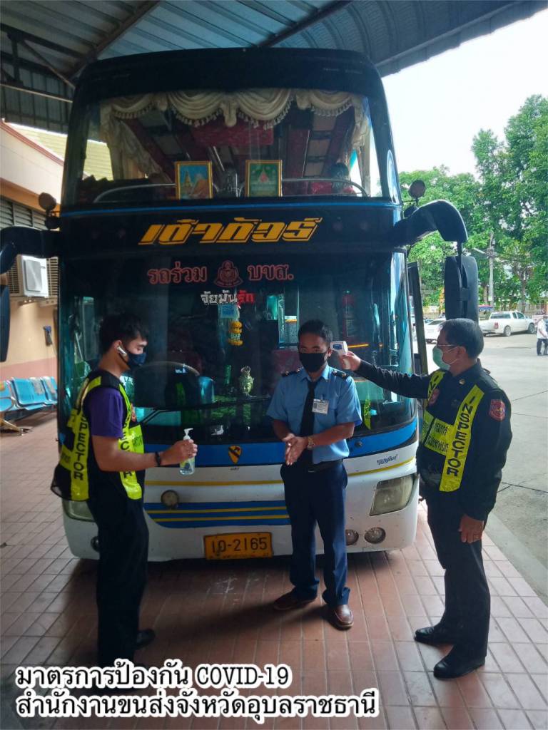 กรมการขนส่งทางบกจึงกำชับไปยังผู้ประกอบการขนส่ง ผู้ให้บริการขนส่งด้วยรถโดยสารสาธารณะทุกประเภท รวมถึงผู้ให้บริการสถานีขนส่งผู้โดยสารทุกแห่ง ดำเนินการตามนโยบายและมาตรการต่างๆ ของรัฐบาลและกระทรวงคมนาคมอย่างเคร่งครัด โดยให้สำนักงานขนส่งทุกแห่งจัดเจ้าหน้าที่ตรวจสอบอย่างต่อเนื่อง วันนี้ (3 สิงหาคม 2563) สำนักงานขนส่งจังหวัด เช่น ชุมพร กาฬสินธุ์ อุทัยธานี พะเยา ยโสธร อุตรดิตถ์ สุรินทร์ สมุทรปราการ บุรีรัมย์ ศรีสะเกษ ชัยภูมิ ลำปาง อุบลราชธานี ขอนแก่น กาญจนบุรี บึงกาฬ กระบี่ ชัยนาท ชัยภูมิ พิษณุโลก มหาสารคาม สงขลา จันทบุรี ลงพื้นที่ตรวจสอบรถโดยสารสาธารณะทุกประเภท กำชับดำเนินการตามมาตรการทางด้านสาธารณสุขอย่างเคร่งครัด ตรวจวัดอุณหภูมิของผู้โดยสารไม่ให้เกิน 37.5 องศาเซลเซียส ควบคุมการใส่หน้ากากอนามัยอย่างเคร่งครัดตลอดการเดินทาง และจัดเตรียมเจลแอลกอฮอล์สำหรับล้างมือไว้ภายในรถหรือสถานีขนส่งผู้โดยสาร ทั้งนี้ กรมการขนส่งทางบกได้ให้ผู้ประกอบการขนส่งลงทะเบียนเข้าใช้แอปพลิเคชันไทยชนะหรือแพลตฟอร์มไทยชนะและจัดพิมพ์ QR Code เพื่อให้ผู้โดยสารลงทะเบียนเช็คอิน-เช็คเอาท์ ทุกครั้งที่ใช้บริการรถโดยสารสาธารณะ และเข้าใช้บริการที่สถานีขนส่งผู้โดยสาร ทั้งนี้ หากพบรถโดยสารสาธารณะไม่จัดให้มีมาตรการป้องกันการแพร่ระบาดโรคติดเชื้อไวรัสโคโรนา 2019 (COVID-19) หรือฉวยโอกาสเอาเปรียบประชาชน สามารถแจ้งร้องเรียนได้ที่สายด่วน 1584