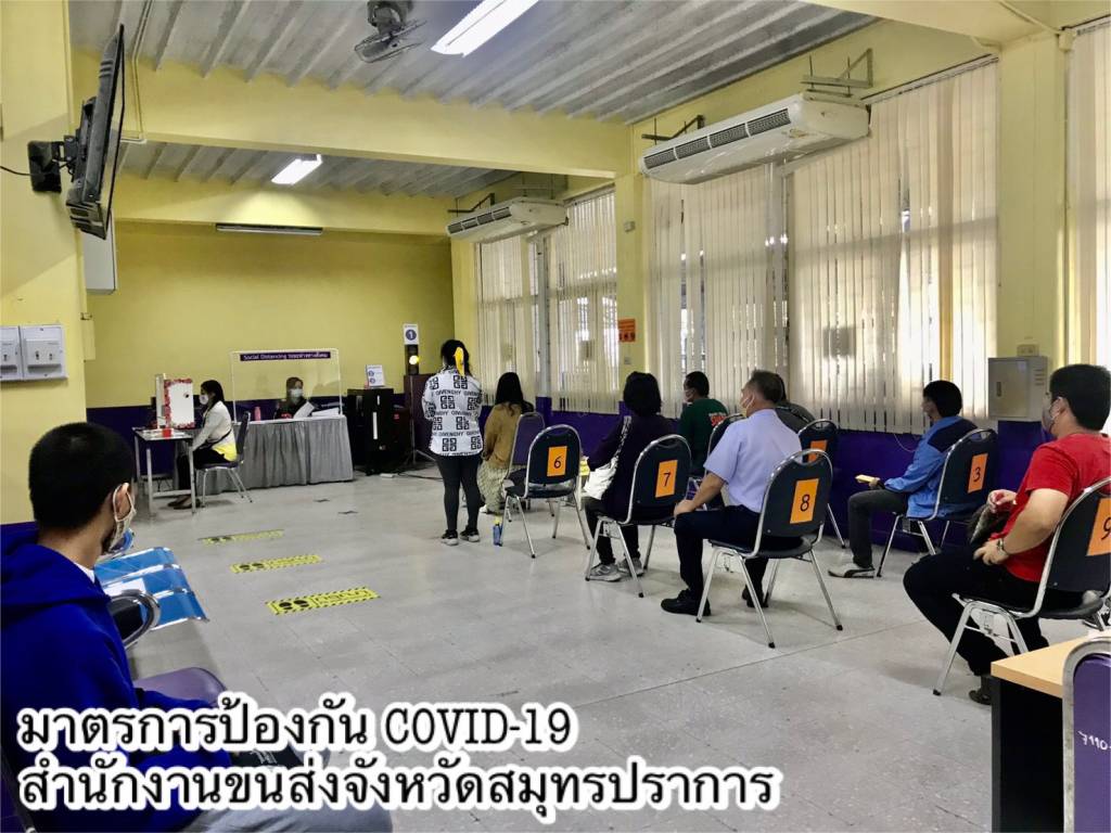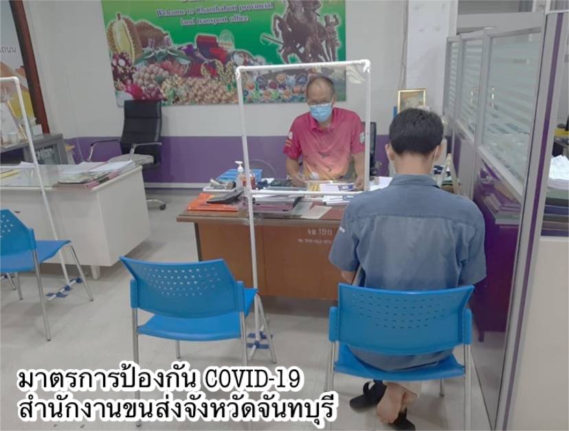 •ดำเนินการตามมาตรการ Social Distancing โดยเว้นระยะห่างของที่นั่งพักคอยของประชาชน กำหนดระยะห่างของตำแหน่งการยืนคอยรับบริการ ติดตั้ง Table Shield กั้นระหว่างผู้มาติดต่อกับเจ้าหน้าที่