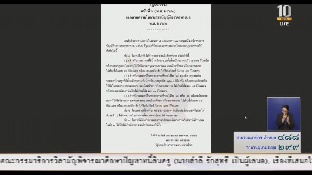 วันที่ 5 สิงหาคม 2563 นายวิรัช พันธุมะผล สมาชิกสภาผู้แทนราษฎร แบบบัญชีรายชื่อ พรรคภูมิใจไทย หารือเรื่องการใช้รถใช้ถนนของประชาชน และ ส.ส. เกือบทุกคน ที่ได้รับความเดือดร้อนเพราะได้รับใบสั่งจากตำรวจทั้งตำรวจทางหลวงและตำรวจภูธร ว่าได้ขับรถยนต์ส่วนบุคคลในความเร็วเกินชั่วโมงละ 100 กิโลเมตรซึ่งกำหนดโดยกฎกระทรวงมหาดไทย (ฉบับที่ 10 พ ศ 2524) ออกตามความตามมาตรา 67 วรรคหนึ่ง ท่านประธานที่เคารพกฎกระทรวงมหาดไทยกำหนดความเร็วไม่เกินชั่วโมงละ 100 กิโลเมตร แต่ตำรวจตั้งกล้องจับความเร็วในจุดใดจุดหนึ่งที่ถนนโล่ง ในเสี้ยวเวลาหนึ่งวินาทีแล้วมาคำนวณเป็นความเร็วในหนึ่งชั่วโมง น่าจะไม่ชอบด้วยกฎหมาย เพราะกฎหมายกำหนดความเร็วรถยนต์ชั่วโมงละไม่เกิน 100 กิโลเมตร การคำนวนความเร็วต้องคำนวนความเร็วในหนึ่งชั่วโมง เพราะกฎกระทรวงบัญญัติความเร็วชั่วโมงละ 100 กิโลเมตร