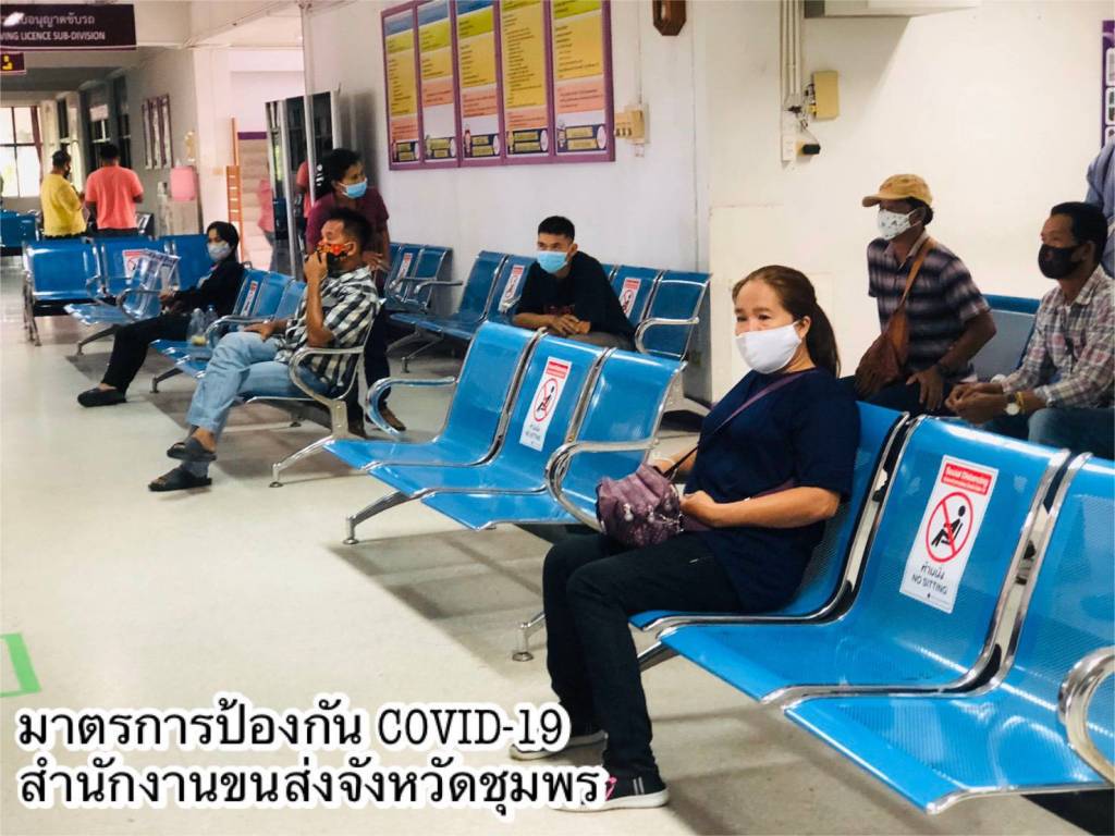 •ด้านอาคารสถานที่และสิ่งอำนวยความสะดวกในหน่วยงาน ทำความสะอาดฆ่าเชื้อโรคพื้นที่ให้บริการภายในสำนักงานขนส่งทุกวัน โดยเฉพาะจุดที่มีการสัมผัสบ่อยครั้ง เช่น เคาน์เตอร์บริการ ที่จับประตู ที่จับราวบันได ปุ่มกดลิฟต์ เป็นต้น รวมถึงห้องอบรมและห้องทดสอบภาคทฤษฎี และภายในรถที่ใช้ในการทดสอบขับรถด้วย