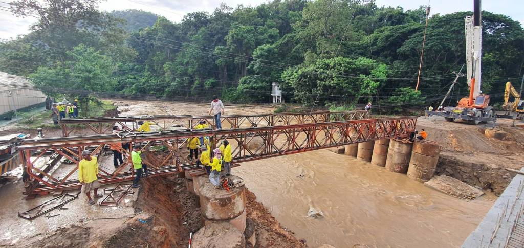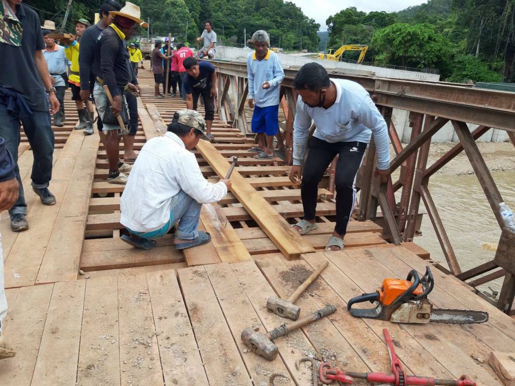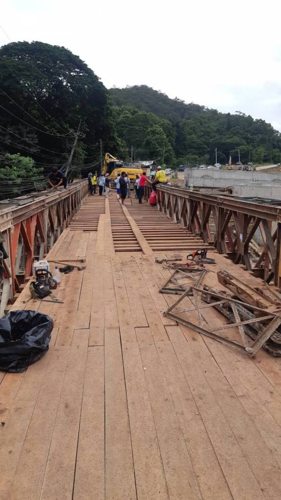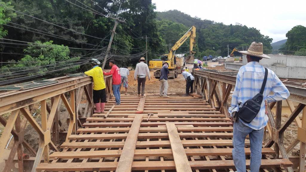- สะพานตัวที่ 5 ที่ กม.38+055 ติดตั้งสะพานเหล็ก (เบลีย์) เสร็จเรียบร้อย พร้อมใช้งาน