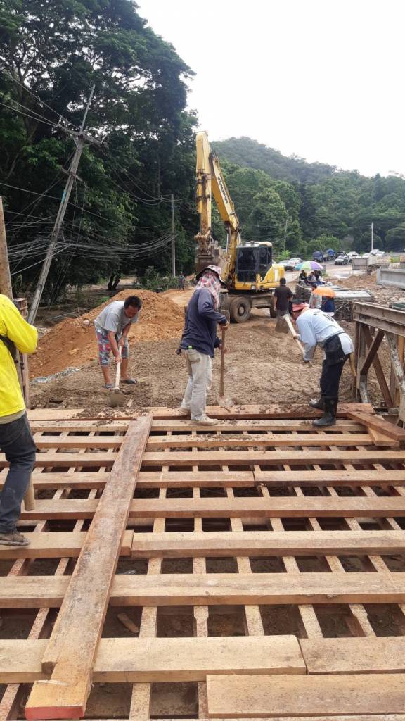 - สะพานตัวที่ 4 ที่ กม.35+880 เทคอนกรีตพื้นสะพาน เพื่อให้รถวิ่งบนสะพานได้