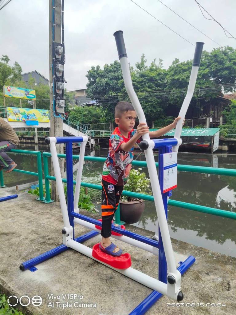 หลังจากนั้น ทางทีมงาน ได้ลงพื้นที่ร่วมแสดงความยินดีกับพี่น้องชาวชุมชนเจริญพัฒนาถาวร ซอยพัฒนาการ 38 เขตสวนหลวง กรุงเทพมหานคร ที่ได้รับมอบเครื่องออกกำลังกายกลางแจ้ง เพื่อส่งเสริมให้พี่น้องในชุมชนได้ออกกำลังกาย และมีสุขภาพร่างกายแข็งแรง