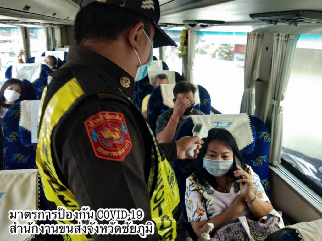 กรมการขนส่งทางบกจึงกำชับไปยังผู้ประกอบการขนส่ง ผู้ให้บริการขนส่งด้วยรถโดยสารสาธารณะทุกประเภท รวมถึงผู้ให้บริการสถานีขนส่งผู้โดยสารทุกแห่ง ดำเนินการตามนโยบายและมาตรการต่างๆ ของรัฐบาลและกระทรวงคมนาคมอย่างเคร่งครัด โดยให้สำนักงานขนส่งทุกแห่งจัดเจ้าหน้าที่ตรวจสอบอย่างต่อเนื่อง วันนี้ (16 สิงหาคม 2563) สำนักงานขนส่งจังหวัด เช่น อุทัยธานี สระแก้ว ชัยนาท เพชรบูรณ์ ระยอง ชุมพร นครสวรรค์ กาญจนบุรี ลำพูน สุรินทร์ ศรีสะเกษ มุกดาหาร ขอนแก่น นราธิวาส ชัยภูมิ พะเยา ราชบุรี พิษณุโลก บุรีรัมย์ อำนาจเจริญ นครราชสีมา กระบี่ ระนอง สงขลา ดำเนินการตรวจสอบรถโดยสารสาธารณะทุกประเภท ทั้งที่สถานีขนส่งผู้โดยสารและจุดตรวจคัดกรองในพื้นที่รับผิดชอบอย่างต่อเนื่อง กำชับผู้ประกอบการขนส่งต้องมีมาตรการทางด้านสาธารณสุขและปฏิบัติตามมาตรการดังกล่าวอย่างเคร่งครัด อาทิ การตรวจวัดอุณหภูมิของพนักงานขับรถและผู้โดยสารไม่ให้เกิน 37.5 องศาเซลเซียส แนะนำให้ผู้โดยสารสวมหน้ากากอนามัยและหน้ากากผ้าอย่างเคร่งครัด และจัดเตรียมเจลแอลกอฮอล์ล้างมือสำหรับผู้โดยสารทั้งภายในรถโดยสารและที่สถานีขนส่งผู้โดยสาร พร้อมกำชับให้ใช้แพลตฟอร์มไทยชนะมาช่วยในการป้องกันและควบคุมโรคด้วย โดยให้ผู้ประกอบการขนส่งลงทะเบียนเข้าใช้แอปพลิเคชันไทยชนะหรือแพลตฟอร์มไทยชนะและจัดพิมพ์ QR Code เพื่อให้ผู้โดยสารลงทะเบียนเช็คอิน-เช็คเอาท์ ทุกครั้งที่ใช้บริการรถโดยสารสาธารณะ และเข้าใช้บริการที่สถานีขนส่งผู้โดยสาร ทั้งนี้ หากพบรถโดยสารสาธารณะไม่มีมาตรการป้องกันการแพร่ระบาดโรคติดเชื้อไวรัสโคโรนา 2019 (COVID-19) หรือฉวยโอกาสเอาเปรียบประชาชน สามารถแจ้งร้องเรียนได้ที่สายด่วน 1584