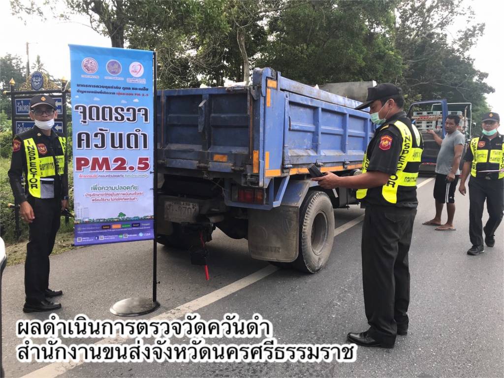 ในส่วนสำนักงานขนส่งจังหวัดทั่วประเทศ ตรวจวัดควันดำ จำนวน 499 คัน (รถบรรทุก 332 คัน,รถโดยสารประจำทาง 149 คัน,รถโดยสารไม่ประจำทาง 18 คัน) พบรถที่มีค่าควันดำเกินเกณฑ์มาตรฐานที่ราชการกำหนด จำนวน 7 คัน ออกใบเตือน จำนวน 23 คัน