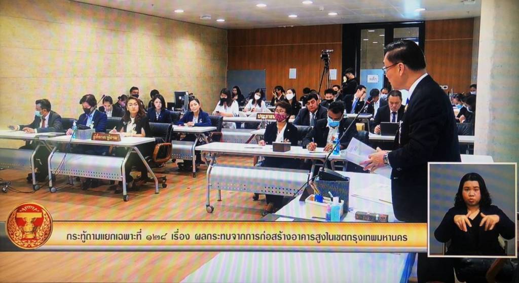 ทั้งนี้ หลังจากตอบกระทู้ถามแยกเฉพาะเป็นที่เรียบร้อยแล้ว นายทรงศักดิ์ ทองศรี รมช.มท. (มท.3) ได้รับมอบหนังสือร้องเรียนจากตัวแทนประชาชน ซึ่งมีข้อเสนอแนะและข้อกังวลต่อการสร้างอาคารสูงในพื้นที่กรุงเทพมหานคร โดยได้สั่งการให้ผู้แทนกรมโยธาธิการและผังเมืองรับข้อเสนอดังกล่าวไปพิจารณาดำเนินการตามอำนาจหน้าที่ต่อไป