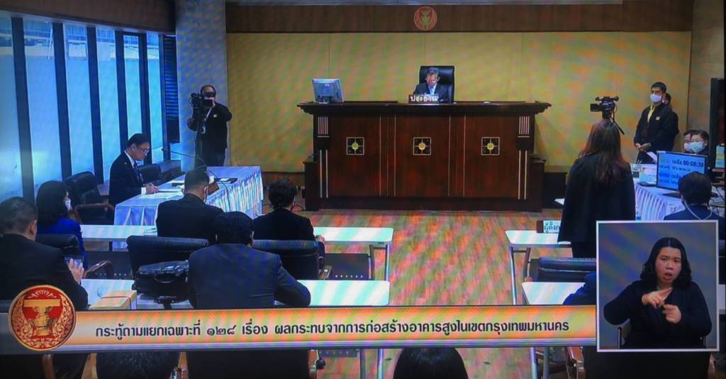 2. กรณีปัญหาการบังคับใช้กฎหมายที่เกิดขึ้น หากมีการก่อสร้างอาคารสูงที่ส่งผลกระทบและสร้างความเสียหายแก่ประชาชนในพื้นที่ กฎหมายว่าด้วยการควบคุมอาคาร มุ่งเน้นที่จะป้องกันเพื่อไม่ให้เกิดอันตรายหรือความเสียหายในการดำเนินการก่อสร้างทุกขั้นตอน ตั้งแต่การออกแบบอาคารจะต้องเป็นไปตามหลักเกณฑ์ที่กฎหมายกำหนด ไม่ว่าเป็นเรื่องคุณสมบัติ วัสดุ วิธีคิดค่าแรงต่าง ๆ ที่มาของแรงกระทำกับอาคาร ที่ดินที่จะใช้ก่อสร้างอาคาร ระยะร่นจากแนวเขตที่ดิน ที่ว่างภายนอกอาคาร ช่องเปิดของอาคาร ระหว่างก่อสร้างอาคารต้องมีผู้ควบคุมงาน (ในกรณีอาคารสูงหรืออาคารขนาดใหญ่พิเศษจะเป็นวิศวกรที่มีใบประกอบวิชาชีพ) ที่ควบคุมดูแลความปลอดภัยขณะก่อสร้างมิให้เกิดความเสียหายต่อบุคคลหรืออาคารที่อยู่ข้างเคียง โดยต้องปฏิบัติตามวิธีการ และหลักเกณฑ์ที่กฎหมายกำหนด เช่น การจัดให้มีรั้วปิดกั้นบริเวณพื้นที่ก่อสร้างตลอดแนวที่ติดกับที่สาธารณะหรือที่ดินต่างเจ้าของหรือผู้ครอบครอง มีการจัดให้มีสิ่งป้องกันวัสดุร่วงหล่นที่อาจเป็นอันตราย เป็นต้น นอกจากนี้กฎหมายกำหนดให้เป็นอำนาจหน้าที่ขององค์กรปกครองส่วนท้องถิ่น ที่อาคารตั้งอยู่ต้องจัดเจ้าหน้าที่ออกตรวจสอบบริเวณที่มีการก่อสร้างตลอดการดำเนินการให้ปฏิบัติตามกฎหมายดังกล่าว หากพบว่า มีการฝ่าฝืน ไม่ดำเนินการตามหลักเกณฑ์ที่มีอยู่หรือที่กฎหมายกำหนด ต้องแจ้งความดำเนินคดีกับเจ้าของอาคาร ผู้ดำเนินงาน และผู้ควบคุมงานต่อพนักงานสอบสวน พร้อมดำเนินการออกคำสั่งทางปกครอง เช่น สั่งระงับการก่อสร้าง สั่งห้ามใช้อาคาร หรือสั่งให้แก้ไขให้ถูกต้องตามข้อเท็จจริงต่อไป เพราะฉะนั้นกรณีหากมีการก่อสร้างอาคารสูงที่ส่งผลกระทบต่อความปลอดภัยและสร้างความเสียหายแก่ประชาชน และมีการฝ่าฝืนกฎหมายว่าด้วยการควบคุมอาคาร ประชาชนผู้เสียหาย หรือได้รับผลกระทบจากการก่อสร้างที่ฝ่าฝืนกฎหมาย หรือผู้พบเห็น ก็สามารถแจ้งต่อเจ้าพนักงานท้องถิ่น ในเขตกรุงเทพมหานคร คือ ผู้ว่าราชการกรุงเทพมหานคร หรือผู้อำนวยการเขต เพื่อให้ดำเนินการตามอำนาจหน้าที่ต่อไป และเมื่อก่อสร้างแล้วเสร็จ หากเป็นอาคารประเภทควบคุมการใช้ เช่น อาคารชุด ก็ต้องมีการออกใบรับรองการก่อสร้างเสียก่อน จึงจะสมารถเปิดใช้อาคารได้ เพื่อให้เจ้าหน้าที่ดำเนินการตรวจสอบว่า อาคารได้ก่อสร้างถูกต้องตามที่ได้รับอนุญาตหรือไม่
