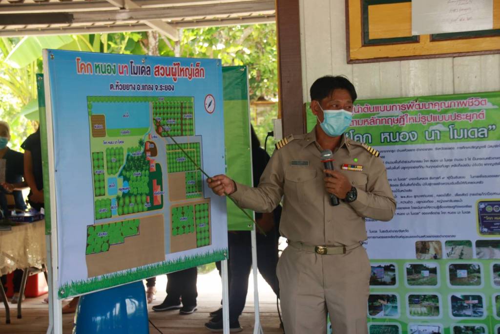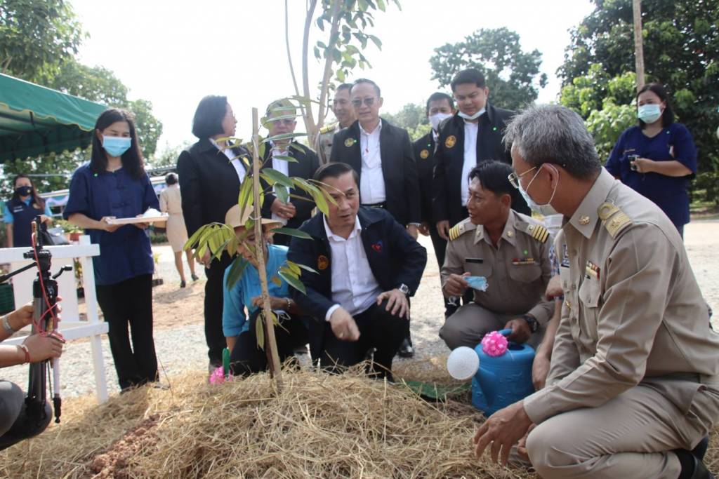 ในการนี้รัฐมนตรีช่วยว่าการกระทรวงมหาดไทย ได้ร่วมปลูกต้นทุเรียนพันธุ์ก้านยาว และเยี่ยมชมฐานเรียนรู้ต่างๆ ประกอบด้วย แปลงผักสวนครัวการเลี้ยงสัตว์ (ไก่ เป็ด กระต่าย ห่าน) การเลี้ยงหมูหลุม ชมการปลูกหญ้าแฝก ชมทุ่งปอเทือง แปลงนาสาธิต บ่อเลี่ยงปลา (ปลานิล/ปลาทับทิม) เยี่ยมชมคลองไส้ไก่ เยี่ยมชมหลุมขนมครก ชมโคกพอเพียง ชมการสาธิตการแปรรูปมะดันแช่อิ่ม ของผู้ประกอบการ OTOP ที่นำมาจัดแสดงด้วย