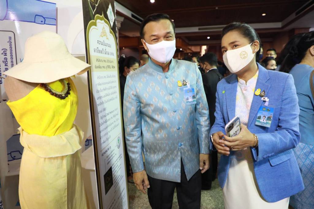 "ผลิตภัณฑ์ผ้าใยสับปะรด หรือ "ใยลักกะตา" ตามภาษาถิ่นระยองที่แปลว่าสับปะรด เกิดจากการส่งเสริมหลักสูตรอาชีพของ กศน.อำเภอปลวกแดง จังหวัดระยอง โดยพัฒนาภูมิปัญญาท้องถิ่นสู่นวัตกรรมและผลิตภัณฑ์พรีเมียม OOCC แบรนด์ ONIE เป็นการเพิ่มมูลค่าจากวัสดุที่มีอยู่ในพื้นที่ ก่อเกิดงาน สร้างรายได้แก่ประชาชน และเมื่อนำมาตัดเสื้อผ้าสวมใส่ ก็มีความสวยงามเป็นเอกลักษณ์ ดังเช่นเสื้อที่นายกรัฐมนตรีและครูโอ๊ะสวมใส่ในวันนี้ ก็ตัดเย็บจากผืนผ้าใยลักกะตา ที่นอกจากจะเป็นการสร้างรายได้ในระดับชุมชนแล้ว ยังเป็นการส่งเสริมผลิตภัณฑ์ของคนไทย และสืบสานภูมิปัญญาท้องถิ่นด้วย ซึ่งขณะนี้เตรียมที่จะหารือกับกระทรวงพาณิชย์ เพื่อจดอนุสิทธิบัตรส่งเสริมผ้าใยลักกะตาเป็นสมบัติอยู่คู่ชาวระยอง เช่นเดียวกับผ้าใยผักตบชวา กศน.ตำบลหนองน้ำใส จังหวัดพระนครศรีอยุธยา และผ้าใยกล้วยไข่ชากังราว กศน.อำเภอขาณุวรลักษบุรี จังหวัดสุโขทัย ด้วย" รมช.ศึกษาธิการ กล่าว
