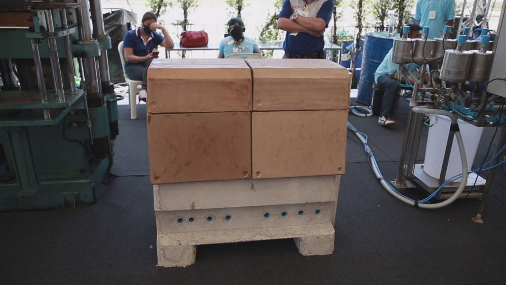 ต่อจากนั้น พลเอกประยุทธ์ ได้ทำพิธีกดปุ่มสัมผัสเพื่อเปิดการใช้งาน โดยเกษตรกรชาวสวนยางให้การปรบมือแสดงความยินดี และเครื่องจักรได้ทำการติดตั้ง “แผ่นยางธรรมชาติครอบกำแพงคอนกรีต” (Rubber Fender Barrier : RFB) และ “หลักนำทางยางธรรมชาติ” (Rubber Guide Post : RGP) ที่บริเวณถนนหน้าสถานที่จัดงาน พร้อมกันนี้นายกรัฐมนตรีและคณะ ยังได้เดินชมนิทรรศการเสมือนจริง โดยมีการสาธิตเครื่องจักรที่ใช้ในการผลิตแผ่นยางธรรมชาติครอบกำแพงคอนกรีต และหลักนำทางยางธรรมชาติ มาผลิตจริงให้ผู้เข้าร่วมงานได้เห็น พร้อมกับเดินทักทายพี่น้องเกษตรกรชาวสวนยางที่มาร่วมงานอย่างเป็นกันเองอีกด้วย