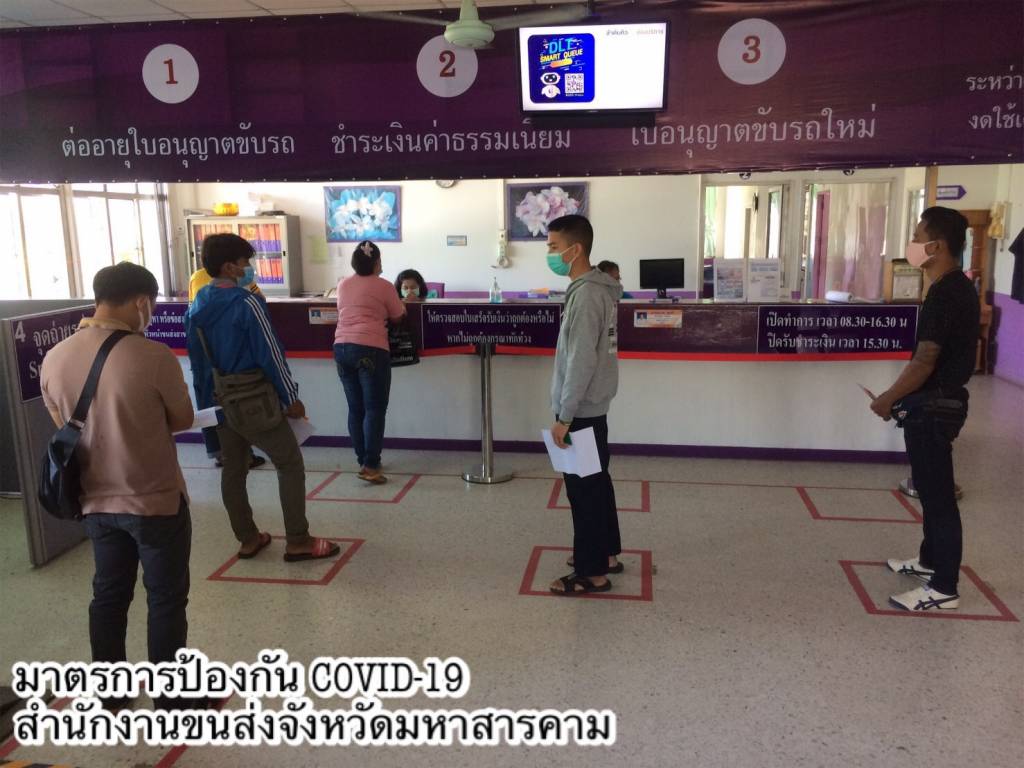 ในส่วนของ การให้บริการที่สำนักงานขนส่งทุกแห่ง มีการปรับรูปแบบดำเนินการแบบ New Normal ตามมาตรการด้านสาธารณสุขอย่างเคร่งครัด จองคิวดำเนินการล่วงหน้าผ่านแอปพลิเคชัน DLT Smart Queue เพื่อบริหารจัดการจำนวนผู้ใช้บริการภายในสำนักงาน ตั้งจุดคัดกรอง ตรวจวัดอุณหภูมิประชาชน ก่อนเข้าอาคารสำนักงาน เว้นระยะห่างของที่นั่งพักคอยของประชาชน กำหนดระยะห่างของตำแหน่งการยืนคอยรับบริการ ติดตั้ง Table Shield กั้นระหว่างผู้มาติดต่อกับเจ้าหน้าที่ ประชาสัมพันธ์การใช้บริการชำระภาษีรถประจำผ่านช่องทางออนไลน์ เพื่อลดการสัมผัส โดยไม่ต้องเดินทางมาติดต่อที่สำนักงานขนส่ง เช่น แอปพลิเคชัน DLT Vehicle Tax หรือ เว็บไซต์ https://eservice.dlt.go.th/ ตู้รับชำระภาษีรถประจำปีอัตโนมัติ (Kiosk) ทั้งนี้ ขอความร่วมมือประชาชนสวมหน้ากากอนามัยหรือหน้ากากผ้าในการติดต่อราชการ และปฏิบัติตามคำแนะนำของเจ้าหน้าที่อย่างเคร่งครัด เพื่อลดความเสี่ยงในการติดต่อแพร่กระจายของโรค