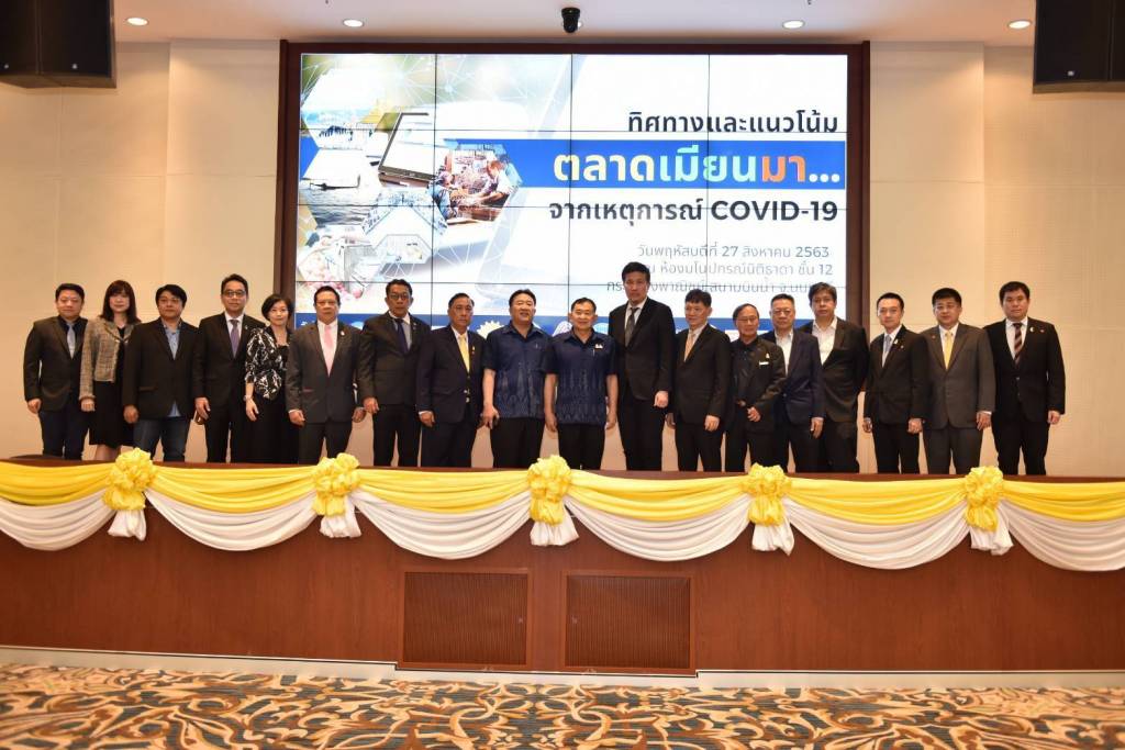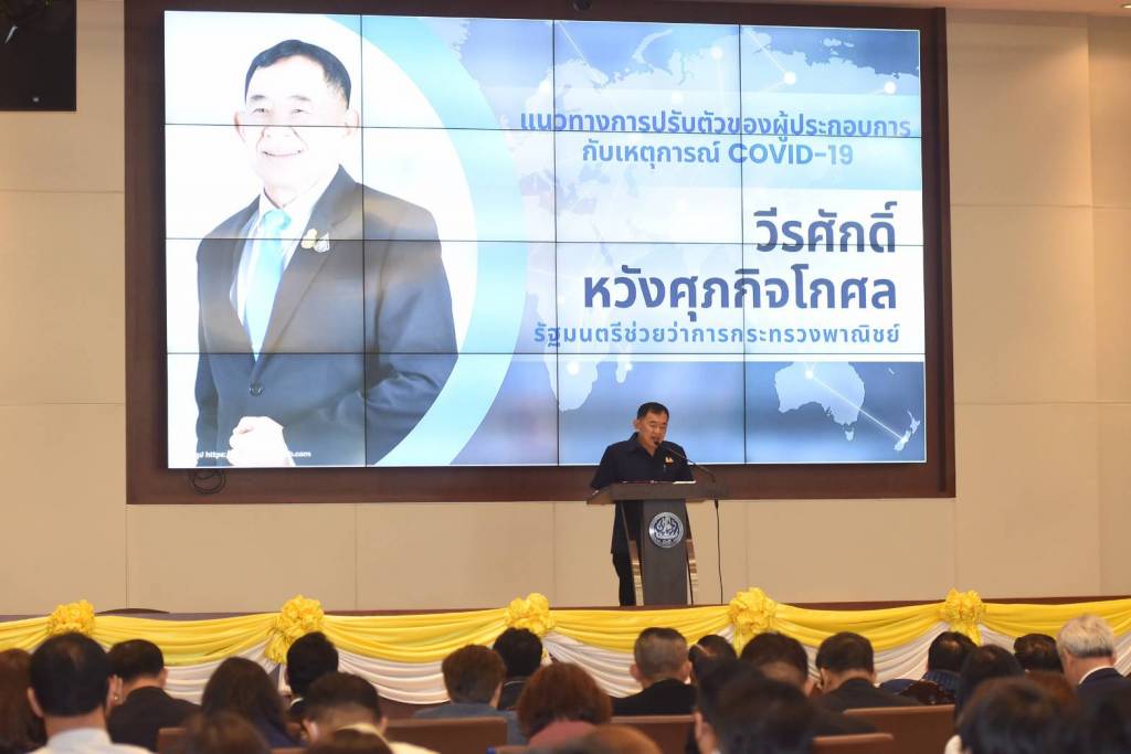 นายวีรศักดิ์ หวังศุภกิจโกศล รัฐมนตรีช่วยว่าการกระทรวงพาณิชย์ เป็นประธานเปิดงานสัมมนา “ทิศทางและแนวโน้มตลาดเมียนมา จากเหตุการณ์ COVID-19” ซึ่งจัดโดยสภาธุรกิจไทย-เมียนมา ในวันที่ 27 สิงหาคม 2563 ณ ห้องมโนปกรณ์นิติธาดา ชั้น 12 กระทรวงพาณิชย์ สนามบินน้ำ จ.นนทบุรี โดยนายวีรศักดิ์ กล่าวว่า ทุกภาคส่วนจำเป็นต้องร่วมมือกัน เพื่อปรับตัวเพื่อก้าวผ่านวิกฤติโควิด-19 ในครั้งนี้ ไม่ใช่แค่เพียงภาครัฐ โดยภาคเอกชน ผู้ประกอบการ รวมถึงประชาชนจะต้องปรับเปลี่ยนพฤติกรรมการดำรงชีวิตและการทำงาน จากวิถีเดิมไปสู่วิถีการดำรงชีวิตใหม่ หรือนิวนอร์มัล โดยทุกฝ่ายควรจะต้องเข้าใจสถานการณ์ที่เปลี่ยนไปนี้อย่างลึกซึ้ง และร่วมมือปรับตัวไปด้วยกัน กล่าวคือ มีความเป็นไปได้ที่การเดินทางระหว่างประเทศของผู้คนทั่วโลกจะไม่กลับมาเหมือนเดิมอีกต่อไป ซึ่งข้อจำกัดดังกล่าวอาจก่อให้เกิด กระแสความนิยมการบริโภคอุปโภคสินค้าและบริการท้องถิ่น ส่งผลให้ผู้ประกอบการต้องปรับตัวหาแหล่งวัตถุดิบ หรือฐานการผลิตให้มีระยะทางที่ใกล้กับผู้บริโภคมากที่สุดเพื่อสร้างความเข้มแข็งทางการค้า โดยปัจจัยสำคัญที่ธุรกิจจำเป็นต้องมีคือ “ภูมิคุ้มกันต่อปัจจัยเสี่ยง” หรือความสามารถที่จะยืดหยุ่น เรียนรู้ และปรับตัวต่อความเสี่ยงต่างๆ ที่เกิดขึ้นได้ และที่สำคัญที่สุดคือจะต้องทำได้ดีกว่า เหนือกว่าคู่แข่ง เพื่อความอยู่รอดในระยะยาว และในอนาคต ธุรกิจจำเป็นที่จะต้องหันมาให้ความสำคัญกับการรักษาสิ่งแวดล้อม สร้างผลกระทบที่ดีต่อสังคม และมีการบริหารจัดการที่โปร่งใสเป็นธรรม ดังนั้น บริษัทจึงจำเป็นต้องจัดลำดับความสำคัญเชิงกลยุทธ์ใหม่ เพราะการแพร่ระบาดของไวรัสโควิด-19 นับเป็นจุดเปลี่ยนครั้งใหม่ของโลกในการเข้าสู่ระบบเศรษฐกิจไร้การสัมผัส โดยเฉพาะอย่างยิ่งใน 3 ด้าน ได้แก่ การค้าออนไลน์ การแพทย์ออนไลน์ และระบบอัตโนมัติต่างๆ ซึ่งเป็นที่แน่ชัดว่าแนวโน้มรูปแบบธุรกิจในอนาคต คือ การลดการติดต่อสัมผัสระหว่างผู้คนให้น้อยที่สุด โดยแทนที่ด้วยระบบอัตโนมัติ ความโปร่งใสและตรวจสอบได้ ในเรื่องความสะอาด สุขอนามัยของสินค้าสำคัญมาก ทั้งผู้ประกอบการและผู้บริโภคจะใช้ระบบเทคโนโลยีเป็นหลัก เพื่อลดการติดต่อสัมผัสทางกายภาพ อาทิ การขาย ไลฟ์-สตรีมมิ่ง การชำระเงินแบบไม่ใช้เงินสด ไม่ใช้การรูดบัตร ไม่ต้องมีการสัมผัสสิ่งของร่วมกัน ฯลฯ