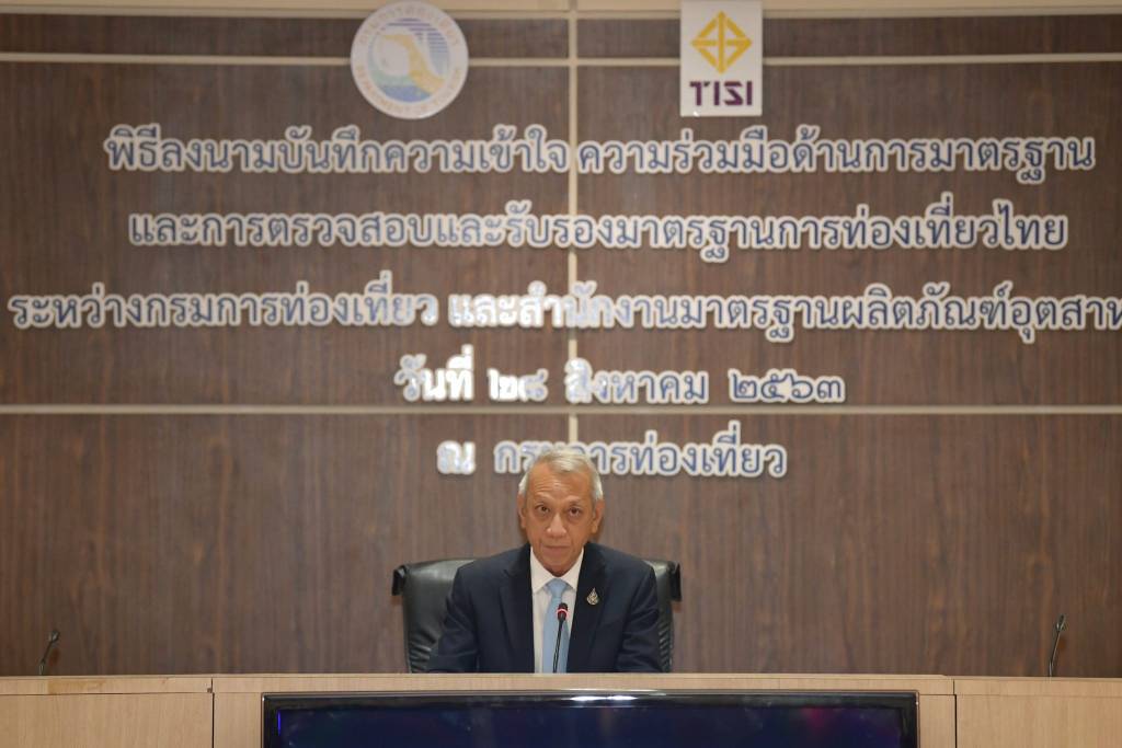 ด้านนายวันชัย พนมชัย เลขาธิการสำนักงานมาตรฐานผลิตภัณฑ์อุตสาหกรรม กล่าวว่า สมอ. ในฐานะสถาบันมาตรฐานแห่งชาติ ยินดีอย่างยิ่งในการร่วมมือกับกรมการท่องเที่ยวซึ่งเป็นหน่วยงานหลักด้านการท่องเที่ยว โดยจะสนับสนุนองค์ความรู้ พัฒนา ด้านการตรวจสอบและรับรอง และการกำหนดมาตรฐานการท่องเที่ยว ให้สอดคล้องตามแนวปฏิบัติสากล เพื่อสร้างความเชื่อมั่นในผลการตรวจสอบและรับรองตามมาตรฐานการท่องเที่ยว อีกทั้งส่งเสริมให้ผู้ประกอบการและหน่วยตรวจสอบและรับรองมาตรฐานการท่องเที่ยว ให้มีขีดความสามารถในการแข่งขัน และเพียงพอในการให้บริการตรวจสอบและรับรองผู้ประกอบการด้านการท่องเที่ยว แหล่งท่องเที่ยว และการบริการที่เกี่ยวข้อง โดยเชื่อมั่นว่าความร่วมมือในครั้งนี้จะทำให้การท่องเที่ยวมีคุณภาพและยั่งยืน รองรับนักท่องเที่ยวทั่วโลกได้ในอนาคต