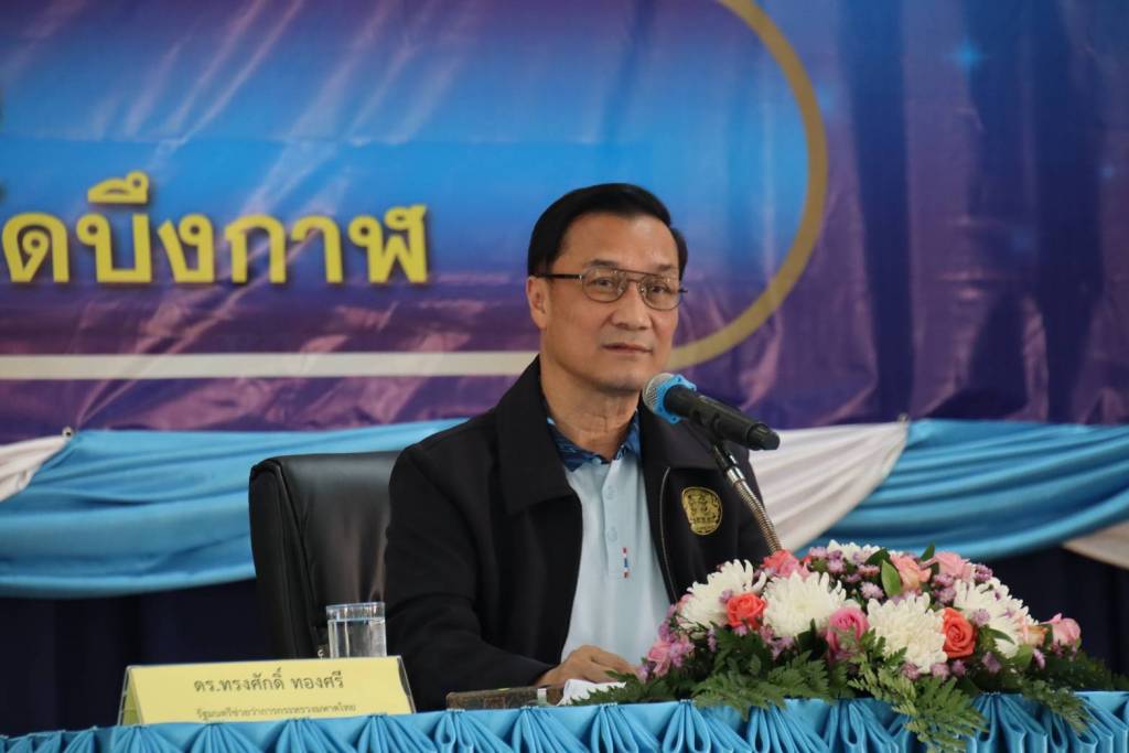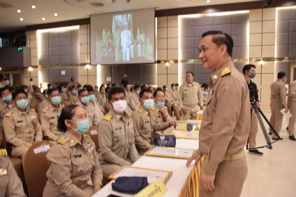 จากนั้น เวลา 10.30 น. รมช.มท. (มท.3)ได้เดินทางไปยังห้องประชุมคอนเวนชั่นฮอลล์ โรงแรมเดอะวัน อ.เมืองบึงกาฬ เพื่อเป็นประธานเปิดโครงการพัฒนาศักยภาพผู้นำท้องที่ผู้นำชุมชนในการบริหารจัดการภัยคุกคามด้านความมั่นคง ภายใต้แนวทางศาสตร์พระราชาสู่การพัฒนาอย่างยั่งยืนจังหวัดบึงกาฬ และมอบประกาศเกียรติคุณกำนัน ผู้ใหญ่บ้าน ผู้มีผลงานดีเด่น ประจำปี 2563 โดยได้บรรยายพิเศษในหัวข้อเรื่องบทบาทหน้าที่กำนัน ผู้ใหญ่บ้าน ในการขับเคลื่อนการพัฒนาประเทศ "ขับเคลื่อนไทยไปด้วยกัน" โดยได้กล่าวถึงกลไกการทำงานของรัฐบาล กระทรวงมหาดไทย และกรมการปกครอง ในระดับหมู่บ้าน ตำบล ผู้มีบทบาทสำคัญในการขับเคลื่อนประเทศให้เกิดความก้าวหน้า โดยกำนัน ผู้ใหญ่บ้าน มีบทบาทในการปฏิบัติหน้าที่ที่สอดรับและเชื่อมโยงในการขับเคลื่อนภารกิจในระดับพื้นที่ ภายใต้การบูรณากสรทุกภาคส่วนเพื่อแก้ไขปัญหาความเดือดร้อนของประชาชน สำหรับวิกฤติโควิด-19 ประเทศไทยได้ใช้กลไกของกำนัน ผู้ใหญ่บ้าน และ อสม. รวมถึงหน่วยงานอื่นๆ ในการแก้ไขปัญหาระดับพื้นที่ โดยรับนโยบายไปปฏิบัติบังเกิดผลเป็นอย่างดี จึงขอขอบคุณ กำนัน ผู้ใหญ่บ้าน แพทย์ประจำตำบล สารวัตรกำนัน และผู้ช่วยผู้ใหญ่บ้าน ที่ยังคงเป็นกำลังสำคัญของรัฐบาลในระดับหมู่บ้าน ตำบล ได้อย่างมีประสิทธิภาพ