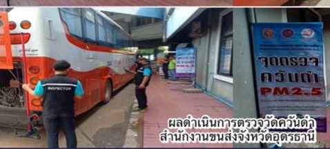 ในส่วนสำนักงานขนส่งจังหวัด ตรวจวัดควันดำ จำนวน 353 คัน (รถบรรทุก 220 คัน,รถโดยสารประจำทาง 122 คัน,รถโดยสารไม่ประจำทาง 11 คัน) พบรถที่มีค่าควันดำเกินเกณฑ์มาตรฐานที่ราชการกำหนด จำนวน 6 คัน และออกใบเตือน จำนวน 26 คัน