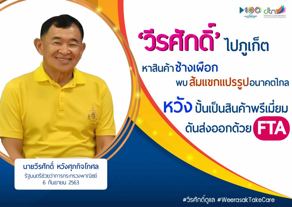 นายวีรศักดิ์ หวังศุภกิจโกศล รัฐมนตรีช่วยว่าการกระทรวงพาณิชย์ เปิดเผยว่า วันที่ 6 กันยายน 2563 ได้นำทีมงานของกระทรวงพาณิชย์ ประกอบด้วย กรมเจรจาการค้าระหว่างประเทศ และกรมทรัพย์สินทางปัญญา ลงพื้นที่เยี่ยมวิสาหกิจชุมชนกลุ่มแม่บ้านเกษตรกรบางหวานพัฒนา อำเภอกะทู้ จังหวัดภูเก็ตเพื่อดูศักยภาพการผลิตและแปรรูปส้มแขก (ส้มควาย) และได้ใช้โอกาสนี้ พูดคุยแลกเปลี่ยนข้อมูลกับเกษตรกรและผู้ประกอบการ พร้อมทั้งแนะนำให้พัฒนาผลิตภัณฑ์ให้ได้คุณภาพมาตรฐานตามความต้องการของผู้บริโภคทั้งในประเทศและต่างประเทศ รวมถึงการใช้ประโยชน์จากความตกลงการค้าเสรี หรือ FTA เป็นเครื่องมือช่วยในการส่งออกสินค้า และการใช้ประโยชน์จากทรัพย์สินทางปัญญาด้วยการจดทะเบียนเครื่องหมายการค้า หรือจดสิทธิบัตร เพื่อเพิ่มขีดความสามารถในการแข่งขันของผลิตภัณฑ์