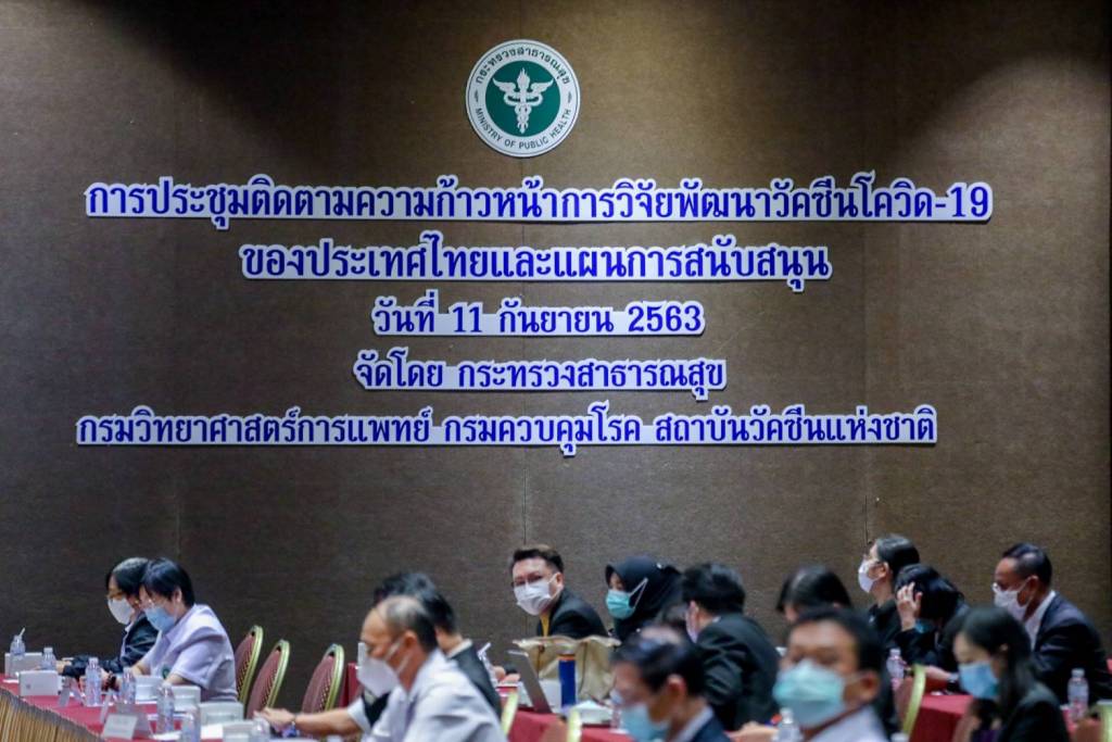 11 กันยายน 2563 ณ อาคารอิมแพ็ก เมืองทองธานี จ.นนทบุรี ที่การประชุมติดตามความก้าวหน้าการวิจัยพัฒนาวัคซีนโควิด-19 ของประเทศไทย และแผนการสนับสนุน ซึ่งมีทีมผู้ผลิตวัคซีน และหน่วยงานที่เกี่ยวข้องเข้าร่วม