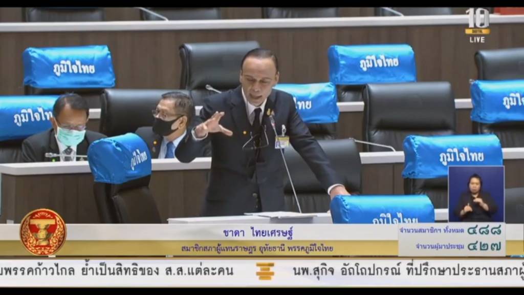10 กันยายน 2563 เวลา 20:54"ส.ส.ชาดา ไทยเศรษฐ์" แนะ ! รัฐ ควรแก้ รธน. แต่ไม่ใช่ตอนนี้ ... ควรให้ประชาชนเข้าถึงกระบวนการยุติธรรมด้วยนายชาดา ไทยเศรษฐ์ สมาชิกสภาผู้แทนราษฎรพรรคภูมิใจไทย จังหวัดอุทัยธานี หารือ ถึงเรื่องรัฐธรรมนูญ ซึ่งฉบับปัจจุบันมีปัญหา และต้องแก้แน่นอน ในหมวดที่ 1 และหมวดที่ 2 แต่ในวันนี้ ยังไม่ใช่เวลาที่จะมาแก้ เพราะยังมีเรื่องอีกมากที่จะต้องทำ แต่จะต้องมีการควบคุมรัฐบาล และข้าราชการให้ดี เพื่อไม่ให้เป็นการฉ้อฉลในการกระจายอำนาจ หรือกระจายทางบัญชี อย่างไรก็ดี ในบางมาตรา ของรัฐธรรมนูญ "แล้วแต่กฎหมายกำหนด" ซึ่งประชาชนไม่ได้ใช้ แต่คนที่ใช้คือรัฐ นี่คือปัญหา เรื่องความไม่เป็นธรรม ที่จะเกิดขึ้นกับประชาชน และ รัฐ เพราะฉะนั้น สมควรที่จะเขียนเจาะจงให้ชัดเจน และให้ประชาชนเข้าถึงกระบวนการยุติธรรม หรือกระบวนการแหล่งเงินทุนต่างๆ นายชาดา ยังกล่าวย้ำด้วยว่า "อย่าบิดเบือนรัฐธรรมนูญฉบับนี้ ไปตามประสงค์ของผู้ใดผู้หนึ่ง อย่าบิดเบือนรัฐธรรมนูญนี้ ไปตามความต้องการของมนุษย์พันธุ์ใดพันธุ์หนึ่ง แต่ให้เป็นรัฐธรรมนูญ ที่เพื่อปวงชนชาวไทยจริง ๆ และทุกอย่างอย่าไปนำความคิดประชาชน อย่าไปเสนอสิ่งที่ไม่ถูกต้อง มันให้มันเกิดขึ้นจากข้างล่างสู่ข้างบน คือให้มาจากประชาชนโดยตรง" แชร์บทความนี้: