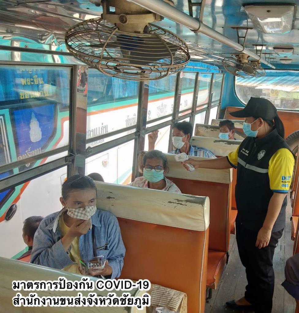 ในส่วนของ การให้บริการที่สำนักงานขนส่งทุกแห่ง มีการปรับรูปแบบดำเนินการแบบ New Normal ตามมาตรการด้านสาธารณสุขอย่างเคร่งครัด พร้อมขอความร่วมมือประชาชนสวมหน้ากากอนามัยหรือหน้ากากผ้าในการติดต่อราชการ และปฏิบัติตามคำแนะนำของเจ้าหน้าที่ เพื่อลดความเสี่ยงในการติดต่อแพร่กระจายของโรค อาทิ การ จองคิวดำเนินการล่วงหน้าผ่านแอปพลิเคชัน DLT Smart Queue เพื่อบริหารจัดการจำนวนผู้ใช้บริการภายในสำนักงาน ตั้งจุดคัดกรอง ตรวจวัดอุณหภูมิประชาชน ก่อนเข้าอาคารสำนักงาน เว้นระยะห่างของที่นั่งพักคอยของประชาชน กำหนดระยะห่างของตำแหน่งการยืนคอยรับบริการ ติดตั้ง Table Shield กั้นระหว่างผู้มาติดต่อกับเจ้าหน้าที่ ประชาสัมพันธ์การใช้บริการชำระภาษีรถประจำผ่านช่องทางออนไลน์ เพื่อลดการสัมผัส โดยไม่ต้องเดินทางมาติดต่อที่สำนักงานขนส่ง เช่น แอปพลิเคชัน DLT Vehicle Tax หรือ เว็บไซต์ https://eservice.dlt.go.th/ ตู้รับชำระภาษีรถประจำปีอัตโนมัติ (Kiosk)