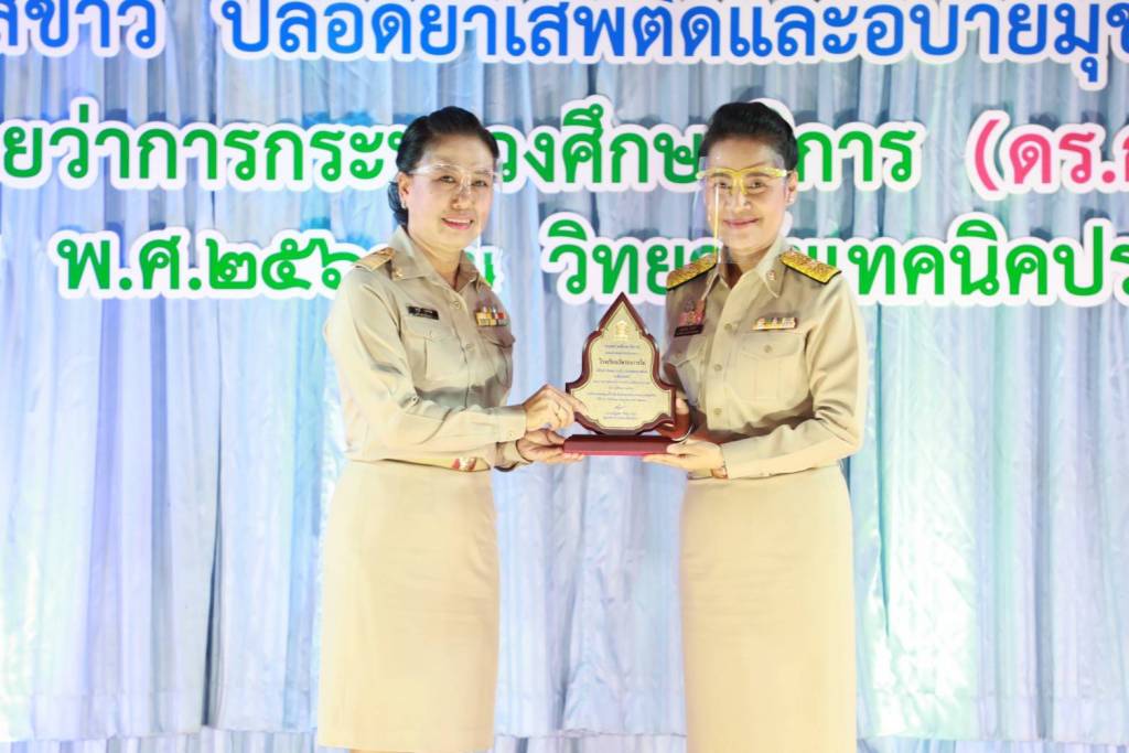 ในโอกาสนี้ ขอแสดงความยินดีกับทุกคน ทุกโรงเรียน ที่ได้รับรางวัลเชิดชูเกียรติในครั้งนี้ ถือเป็นสิ่งแสดงให้เห็นถึงความร่วมมือ ร่วมใจ ทุ่มเทเสียสละ ซึ่งเรื่องของยาเสพติดเป็นเรื่องที่ยาก จะทำเพียงลำพังฝ่ายใดฝ่ายหนึ่งไม่ได้ แต่จะต้องอาศัยความร่วมมือของทุกภาคส่วน และการที่จะดำเนินงานจนผ่านเกณฑ์มาตรฐานตัวชี้วัด ก็เป็นเรื่องที่ยากเช่นกัน แต่สิ่งที่ยากกว่าก็คือ การดำรงไว้ซึ่งมาตรฐานการดำเนินงานให้คงอยู่ตลอดไป ทั้งนี้ ขอฝากความภาคภูมิใจและคำยกย่องชื่นชม กลับไปยังนักเรียน ครู และผู้บริหารทุกคน ของโรงเรียนทุกแห่งที่ได้รับรางวัลด้วย