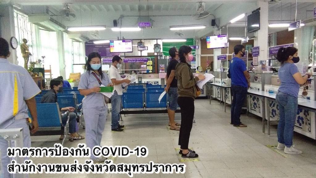 •ดำเนินการตามมาตรการ Social Distancing โดยเว้นระยะห่างของที่นั่งพักคอยของประชาชน กำหนดระยะห่างของตำแหน่งการยืนคอยรับบริการ ติดตั้ง Table Shield กั้นระหว่างผู้มาติดต่อกับเจ้าหน้าที่