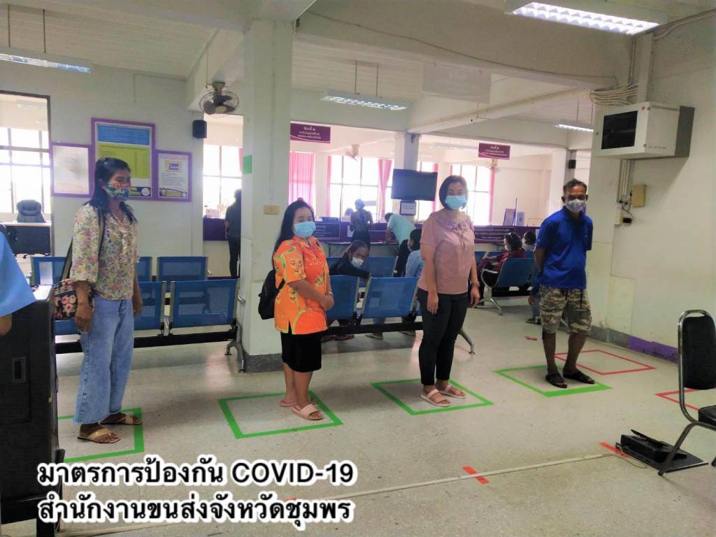 •ด้านอาคารสถานที่และสิ่งอำนวยความสะดวกในหน่วยงาน ทำความสะอาดฆ่าเชื้อโรคพื้นที่ให้บริการภายในสำนักงานขนส่งทุกวัน โดยเฉพาะจุดที่มีการสัมผัสบ่อยครั้ง เช่น เคาน์เตอร์บริการ ที่จับประตู ที่จับราวบันได ปุ่มกดลิฟต์ เป็นต้น รวมถึงห้องอบรมและห้องทดสอบภาคทฤษฎี และภายในรถที่ใช้ในการทดสอบขับรถด้วย
