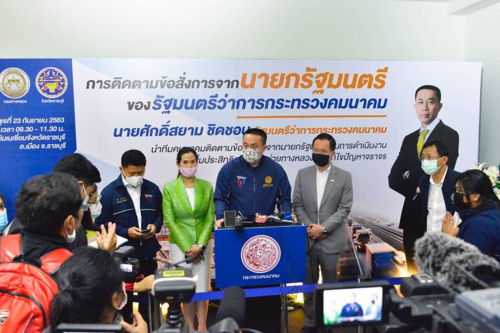 วันที่ 23 กันยายน 2563 (เวลา 09.45 น.) ณ โรงยิมเนเซี่ยมจังหวัดราชบุรี นายศักดิ์สยาม ชิดชอบ รัฐมนตรีว่าการกระทรวงคมนาคม ลงพื้นที่ติดตามข้อสั่งการจากนายกรัฐมนตรีในการดำเนินงานเพิ่มประสิทธิภาพโครงข่ายทางหลวงและแก้ไขปัญหาจราจร โดยมี นายชยาวุธ จันทร ผู้ว่าราชการจังหวัดราชบุรี และประชาชนในพื้นที่จังหวัดราชบุรีให้การต้อนรับ