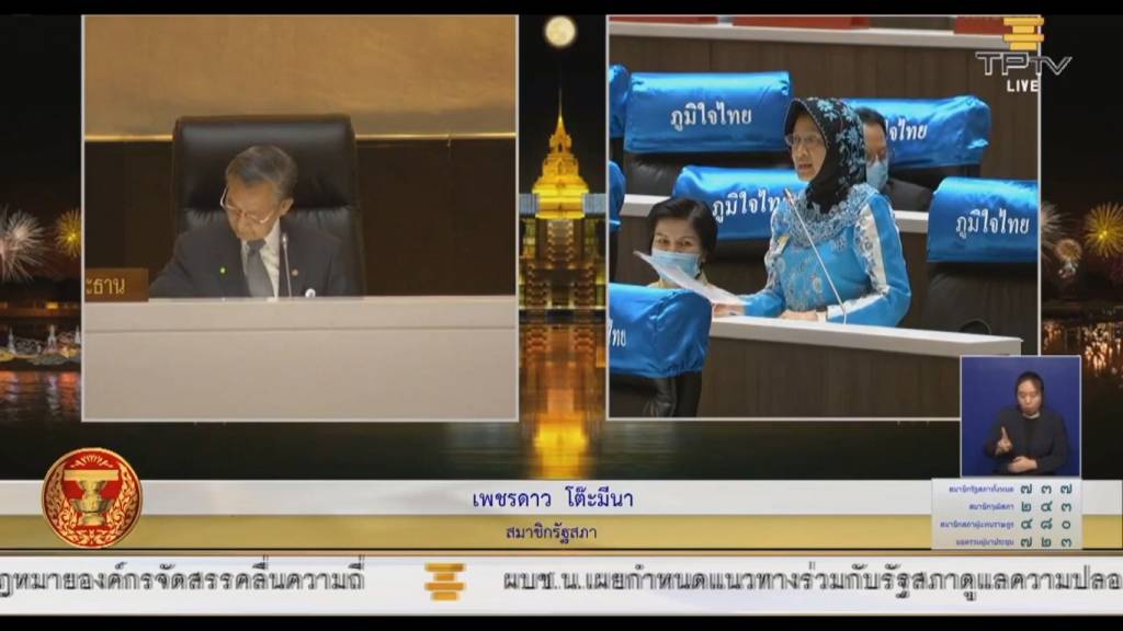 แพทย์หญิงเพชรดาว โต๊ะมีนา ส.ส.บัญชีรายชื่อ พรรคภูมิใจไทย พร้อมสนับสนุนญัตติร่างรัฐธรรมนูญแห่งราชอาณาจักรไทย(การแก้ไขเพิ่มเติม) (ฉบับที่) และพรรคภูมิใจไทยสนับสนุนการแก้ไขรัฐธรรมนูญในมาตรา 256 โดยให้มีสภาร่างรัฐธรรมนูญที่มาจากประชาชนและสภาร่างรัฐธรรมนูญต้องมีความเป็นอิสระในทุกขั้นตอน
