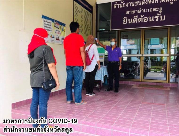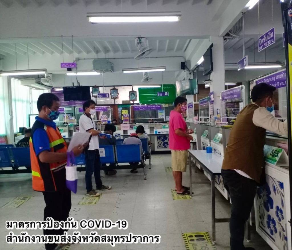 ในส่วนของ การให้บริการที่สำนักงานขนส่งทุกแห่ง มีการปรับรูปแบบดำเนินการแบบ New Normal ตามมาตรการด้านสาธารณสุขอย่างเคร่งครัด พร้อมขอความร่วมมือประชาชนสวมหน้ากากอนามัยหรือหน้ากากผ้าในการติดต่อราชการ และปฏิบัติตามคำแนะนำของเจ้าหน้าที่ เพื่อลดความเสี่ยงในการติดต่อแพร่กระจายของโรค อาทิ การ จองคิวดำเนินการล่วงหน้าผ่านแอปพลิเคชัน DLT Smart Queue เพื่อบริหารจัดการจำนวนผู้ใช้บริการภายในสำนักงาน ตั้งจุดคัดกรอง ตรวจวัดอุณหภูมิประชาชน ก่อนเข้าอาคารสำนักงาน เว้นระยะห่างของที่นั่งพักคอยของประชาชน กำหนดระยะห่างของตำแหน่งการยืนคอยรับบริการ ติดตั้ง Table Shield กั้นระหว่างผู้มาติดต่อกับเจ้าหน้าที่ ประชาสัมพันธ์การใช้บริการชำระภาษีรถประจำผ่านช่องทางออนไลน์ เพื่อลดการสัมผัส โดยไม่ต้องเดินทางมาติดต่อที่สำนักงานขนส่ง เช่น แอปพลิเคชัน DLT Vehicle Tax หรือ เว็บไซต์ https://eservice.dlt.go.th/ ตู้รับชำระภาษีรถประจำปีอัตโนมัติ (Kiosk)