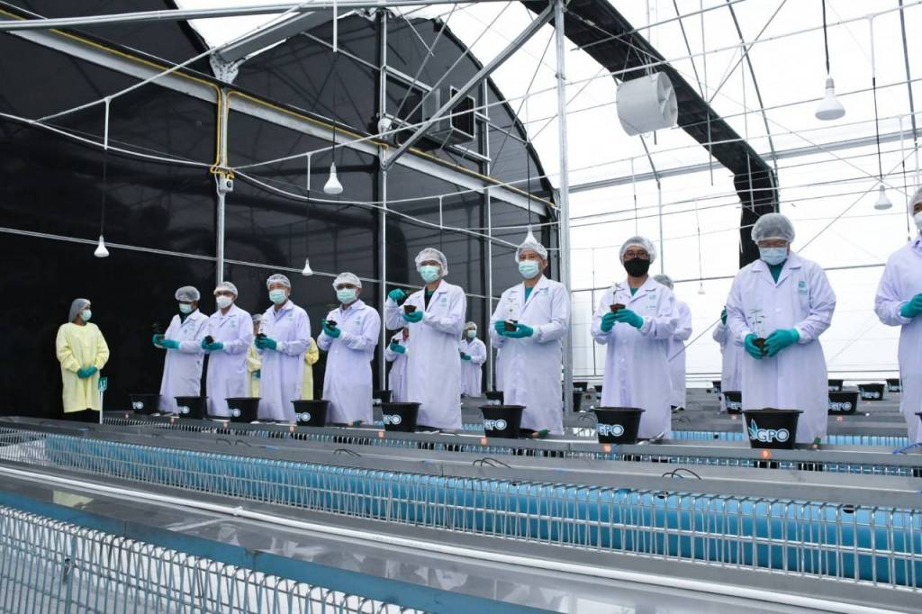 สำหรับโครงการที่ จ.ชลบุรี นั้น เป็นส่วนหนึ่งของการดำเนินการในระยะที่ 2 เป็นการปลูกระดับกึ่งอุตสาหกรรม ใช้พื้นที่ในการดำเนินการ 1,552 ตารางเมตร รองรับการปลูกกัญชาได้ประมาณ 1,300 ต้นต่อปี เพื่อศึกษาและพัฒนาวิธีการเพาะปลูก ตลอดจนพัฒนาสายพันธุ์กัญชาทางการแพทย์ที่ให้สารสำคัญสูงและเหมาะสมกับการปลูกในประเทศไทย จะสามารถลดต้นทุนการผลิตช่อดอกกัญชาในอนาคต โดยเน้น 3 สายพันธุ์ลูกผสมที่จำเป็นทางการแพทย์ ทั้ง CBD เด่น THC เด่น CBD : THC (1:1) และสายพันธุ์ไทย ดำเนินการปลูกในโรงเรือน (Greenhouse) 3 ระบบ ได้แก่