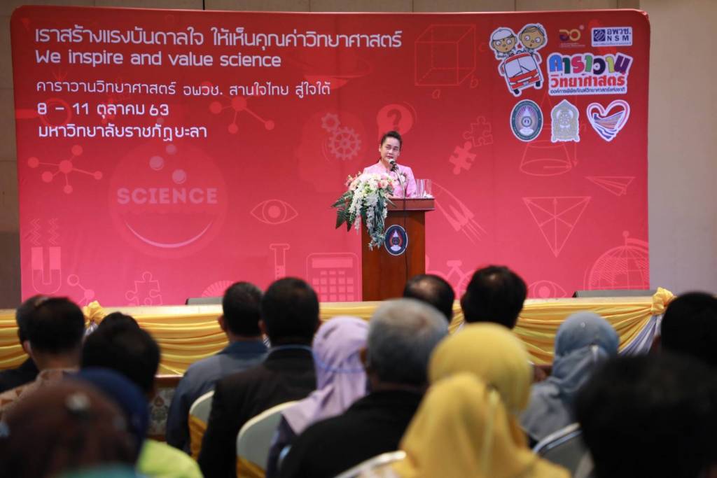 ขอเชิญชวนนักเรียน นักศึกษา พ่อแม่ผู้ปกครอง ในจังหวัดยะลาและจังหวัดใกล้เคียง มาเรียนรู้ในงานคาราวานวิทยาศาสตร์ อพวช. สานใจไทย สู่ใจใต้ พร้อมกิจกรรมค่ายเปิดโลกการเรียนรู้วิทยาศาสตร์ ระหว่างวันที่ 8-11 ตุลาคม 2563 ณ มหาวิทยาลัยราชภัฏยะลา จังหวัดยะลา และขอขอบคุณทุกฝ่าย ที่ให้การสนับสนุนการจัดงานเป็นอย่างดี และขอให้เยาวชนทุกคน เป็นคนดี ยึดมั่นเทิดทูนสถาบันชาติ ศาสนา และพระมหากษัตริย์ เป็นผู้นำในการเสริมสร้างความรัก ความสามัคคี ตอบแทนบุญคุณแผ่นดินแ ละร่วมกันพัฒนาประเทศชาติให้ยั่งยืนสืบไป" รมช.ศึกษาธิการ กล่าว