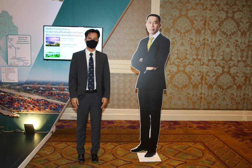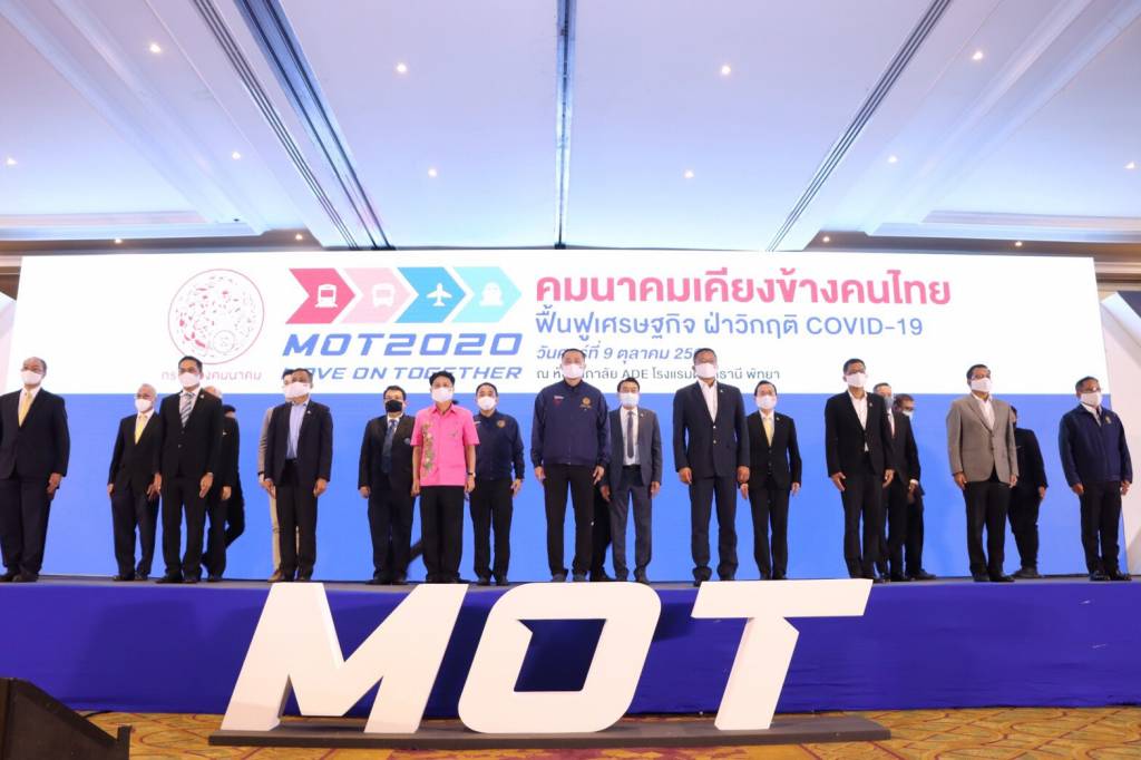 นโยบายด้านการคมนาคมขนส่งทางน้ำ ได้เร่งรัดพัฒนาโครงการท่าเรือแหลมฉบัง ระยะที่ 3 เพื่อเพิ่มขีดความสามารถในการขนส่งสินค้าทางทะเล พัฒนาเขื่อนป้องกันการกัดเซาะชายฝั่งทะเล จำนวน 2 แห่ง บริเวณหาดแสงจันทร์ จังหวัดระยอง และเสริมทรายป้องกันการกัดเซาะชายหาดบริเวณหาดจอมเทียน จังหวัดชลบุรี (ระยะที่ 1) รวมถึงส่งเสริมโครงการ Thailand Riviera เพื่อกระตุ้นการท่องเที่ยวชายฝั่งภาคตะวันออก พัฒนาท่าเรือและเส้นทางเดินเรือท่องเที่ยว โดยเปิดแล้ว 1 เส้นทาง ประกอบด้วย เส้นทางพัทยา - เขาตะเกียบ และในอนาคตเตรียมเปิดอีก 1 เส้นทาง ได้แก่ เส้นทางสัตหีบ - บางสะพาน ด้านการคมนาคมขนส่งทางอากาศ ได้พัฒนาท่าอากาศยานอู่ตะเภาเป็นท่าอากาศยานพาณิชย์หลัก แห่งที่ 3 ของประเทศ และการพัฒนาศูนย์ฝึกอบรมบุคลากรด้านการบินและอวกาศอู่ตะเภา เพื่อยกระดับฝีมือแรงงานในอุตสาหกรรมการบิน เพื่อยกระดับสู่การเป็นศูนย์กลางการบินภาคตะวันออก Aviation Hub ของไทยในภูมิภาค นอกจากการพัฒนาระบบโครงข่ายคมนาคมแล้ว กระทรวงฯ ยังคำนึงถึงความปลอดภัยในการเดินทาง โดยคิดค้นกันชนยางพาราครอบแบริเออร์คอนกรีต (RFB) และเสาหลักนำทางจากยางพารา (RGP) ซึ่งจะช่วยลดความรุนแรงของอุบัติเหตุ ลดการสูญเสียชีวิตและทรัพย์สินของผู้ใช้ทาง ตลอดจนยกระดับรายได้ และคุณภาพชีวิตของเกษตรกรสวนยาง โดยรับซื้อน้ำยางพาราโดยตรงจากเกษตรกร ไม่ผ่านพ่อค้าคนกลาง ทั้งนี้ กระทรวงฯ มีแผนดำเนินการโครงการดังกล่าว ระหว่างปี 2563 - 2565 วงเงิน 85,623 ล้านบาท โดยตั้งเป้าผลิตแผ่นยางหุ้มแบริเออร์ 12,282 กิโลเมตร 83,421 ล้านบาท และหลักนำทางยางพารา 1.063 ล้านต้น 2,202 ล้านบาท คาดว่าจำนวนเงินที่เกษตรกรจะได้รับ 3 ปี รวม 30,108 ล้านบาท คิดเป็นปริมาณน้ำยางที่ใช้ 1 ล้านตัน เฉลี่ยปีละ 300,000 ตัน ซึ่งปัจจุบันได้ลงพื้นที่จังหวัดต่างๆ เพื่อเดินหน้าโครงการอย่างเป็นรูปธรรม การจัดนิทรรศการและการเสวนาสร้างการรับรู้ฯ ในครั้งนี้ เป็นการสร้างการรับรู้และการมีส่วนร่วมของประชาชน รวมถึงสร้างความเชื่อมั่นให้กับทุกภาคส่วน โดยภายในงานมีกิจกรรมต่าง ๆ ประกอบด้วย การเสวนา หัวข้อ “คมนาคมเคียงข้างคนไทย ฟื้นฟูเศรษฐกิจ ฝ่าวิกฤต COVID-19” โดยวิทยากรผู้เชี่ยวชาญจากภาครัฐ ภาคเอกชน องค์กรปกครองส่วนท้องถิ่น และหอการค้า