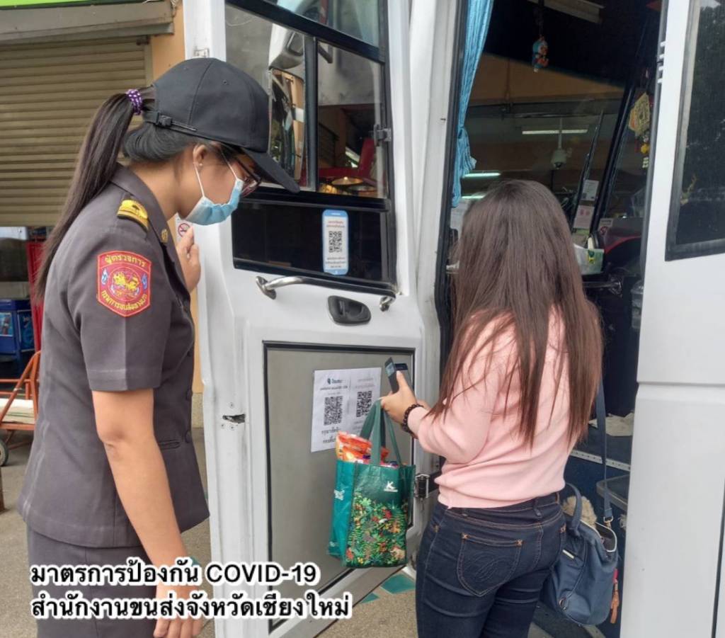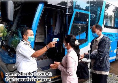 วันนี้ (11 ตุลาคม 2563) สำนักงานขนส่งจังหวัด เช่น จันทบุรี ตราด เชียงใหม่ พิษณุโลก อุบลราชธานี ขอนแก่น พระนครศรีอยุธยา หนองคาย ศรีสะเกษ ลำพูน อุทัยธานี นครปฐม นครสวรรค์ ระนอง ชัยภูมิ สตูล ประจวบคีรีขันธ์ สมุทรปราการ ฉะเชิงเทรา อุดรธานี กาฬสินธุ์ ศรีสะเกษ มุกดาหาร กาญจนบุรี นครราชสีมา อำนาจเจริญ สุรินทร์ บุรีรัมย์ อุตรดิตถ์ ชุมพร ราชบุรี ดำเนินการตรวจสอบรถโดยสารสาธารณะทุกประเภททั้งที่สถานีขนส่งผู้โดยสารและจุดตรวจคัดกรองในพื้นที่รับผิดชอบ กำชับมาตรการทางด้านสาธารณสุขเพื่อป้องกันการแพร่ระบาดของโรคโควิด-19 อย่างต่อเนื่อง โดยเฉพาะการแนะนำให้ผู้โดยสารต้องสวมหน้ากากอนามัยหรือหน้ากากผ้าตลอดการเดินทาง และต้องมีมาตรการคัดกรองผู้โดยสาร โดยการตรวจวัดอุณหภูมิของผู้โดยสารไม่ให้เกิน 37.5 องศาเซลเซียส จัดเตรียมแอลกอฮอล์ชนิดเจลหรือชนิดน้ำสำหรับล้างมือทั้งที่สถานีขนส่งผู้โดยสารและภายในรถ พร้อมกำชับให้ผู้ประกอบการขนส่งลงทะเบียนใช้แอปพลิเคชันไทยชนะหรือแพลตฟอร์มไทยชนะและจัดพิมพ์ QR Code เพื่อให้ผู้โดยสารลงทะเบียนเช็คอิน-เช็คเอาท์ ทุกครั้งที่ใช้บริการรถโดยสารสาธารณะและที่สถานีขนส่งผู้โดยสาร