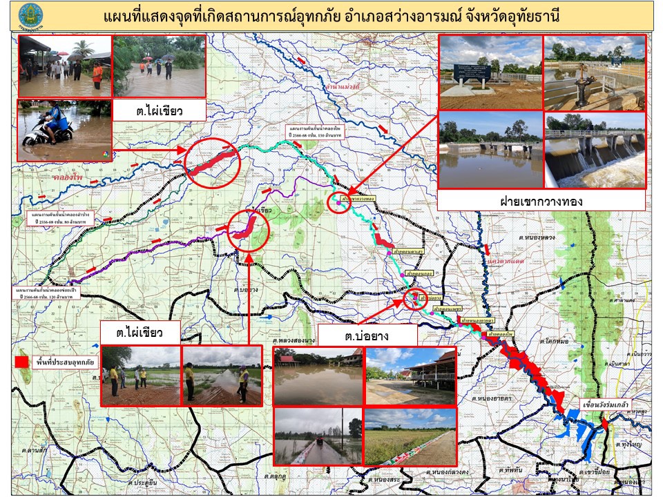 นางสาวมนัญญา ไทยเศรษฐ์ รัฐมนตรีช่วยว่าการกระทรวงเกษตรและสหกรณ์ ฟังรายงานสถานการณ์น้ำอำเภอสว่างอารมณ์ จังหวัดอุทัยธานี ณ ฝายเขากวางทอง ต.ไผ่เขียว อ.สว่างอารมณ์ จ.อุทัยธานี มีพื้นที่ได้รับผลกระทบ 5 ตำบล 26 หมู่บ้าน บ้านเรือนได้รับผลกระทบ 162 หลังคาเรือน พื้นที่การเกษตรได้รับผลกระทบ 21,084 ไร่ พร้อมพบปะพี่น้องประชาชน รับฟังปัญหาและให้กำลังใจแก่เกษตรกรและประชาชนผู้ประสบอุทกภัย และมอบหมายให้หน่วยงานที่รับผิดชอบดำเนินการแก้ไขปัญหาต่อไป